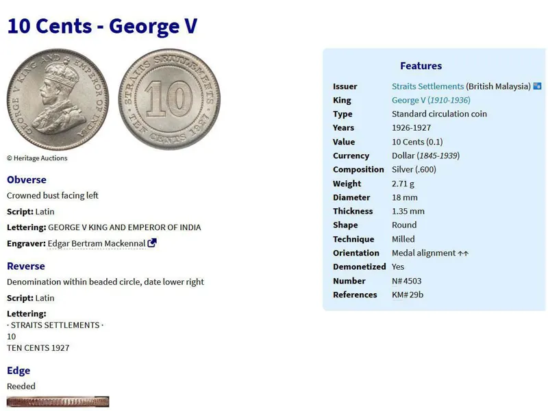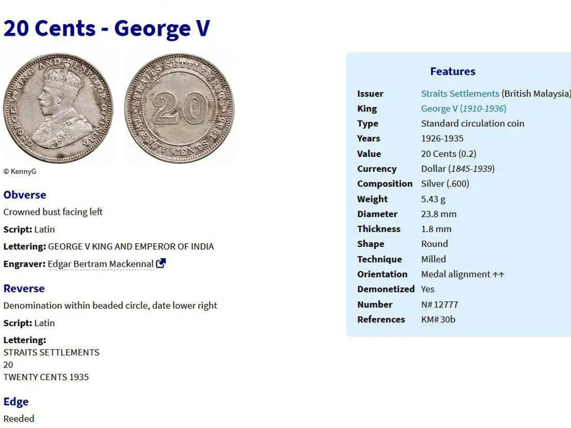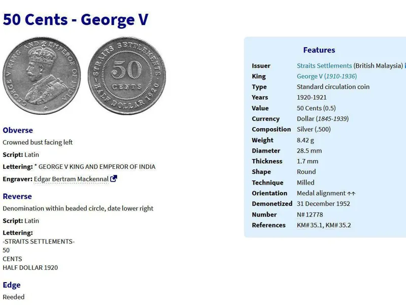 سکه های10و20و50 سنت نقره مالایا جرج پنجم (نایاب)