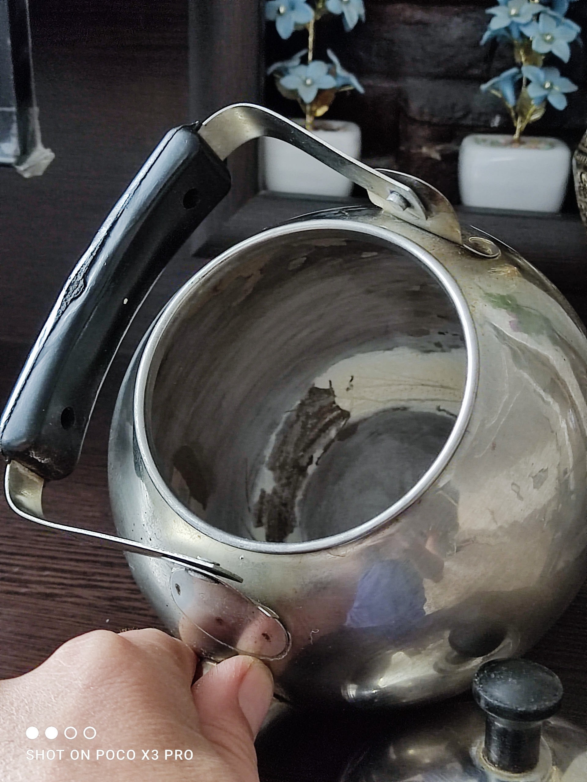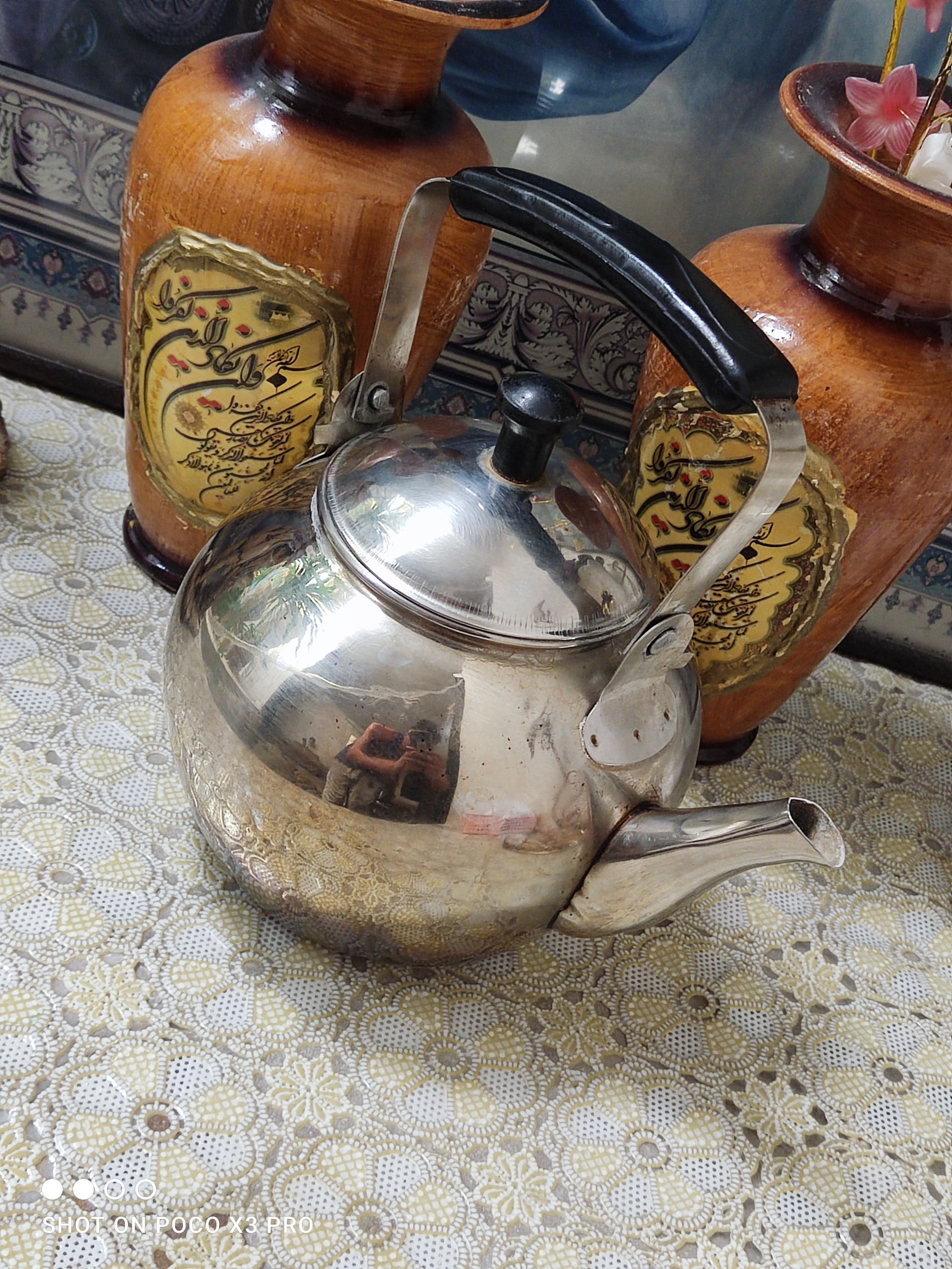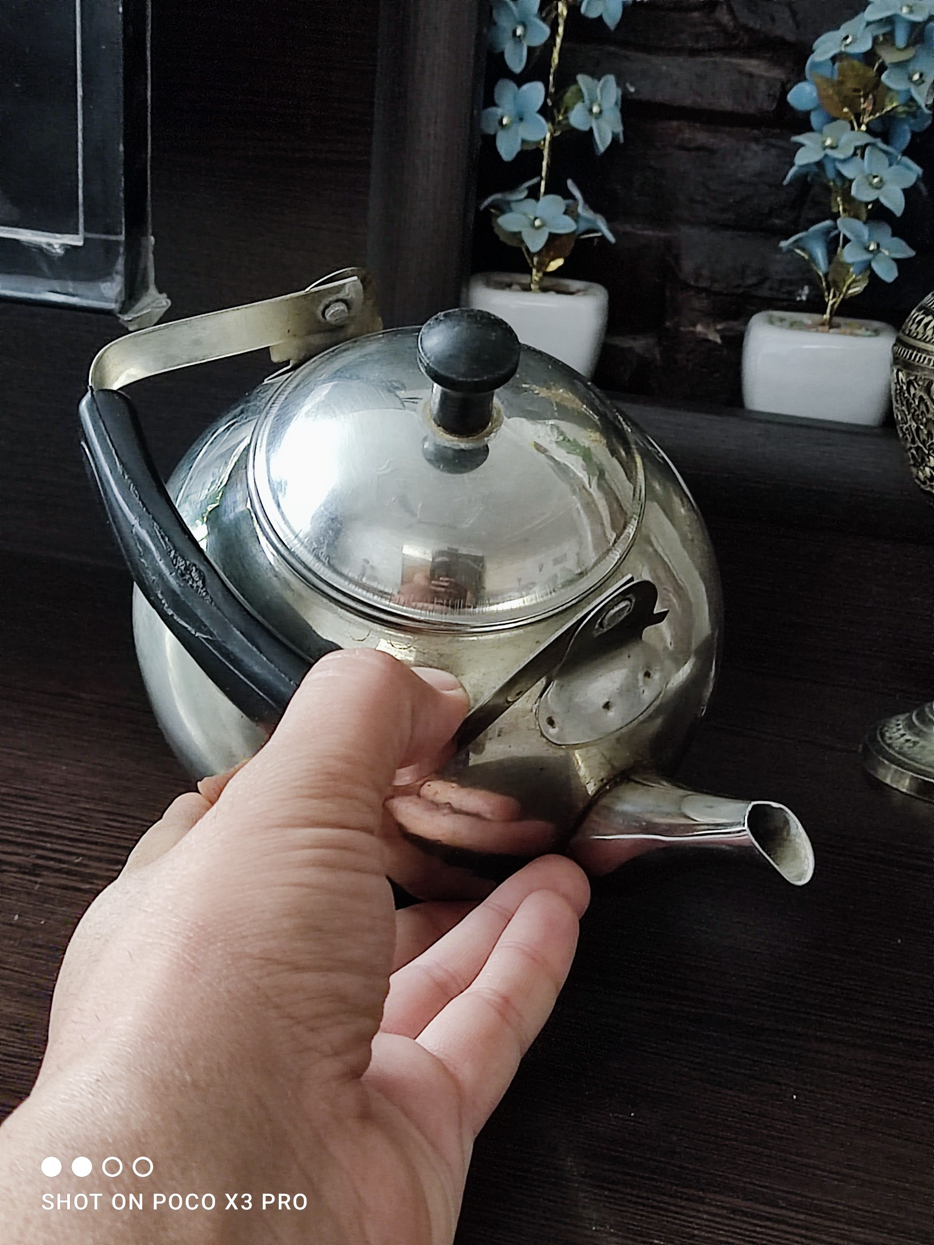 قوری استیل قدیمی سالم و تمیز و بکر دسته قوری فابریک خودش نیس عوض شده تنها عیبی که میشه براش گذاشت همینه سایز متوسط یک لیتری شاید بگیره مطابق تصاویر
