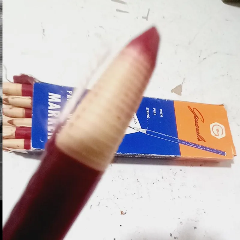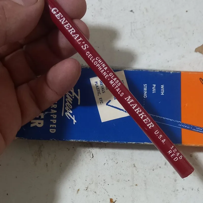 مداد قرمز نخی و روغنی قدیمی البته روش نوشته نشانه گذاری ووو .ولی اینارو حقیقت برا مداد آرایش هم میبرن .حالا من از اون کارایی اش سر در نمیارم ولی چندین بسته لوازم آرایشی ها از اینا بردن .خلاصه مداد روغنیه خوبیه بعدش احتیاج به مداد تراش نداره اون نخش رو میکشی به اندازه نوکش میاد بیرون و بسته دوازده تایی هستش