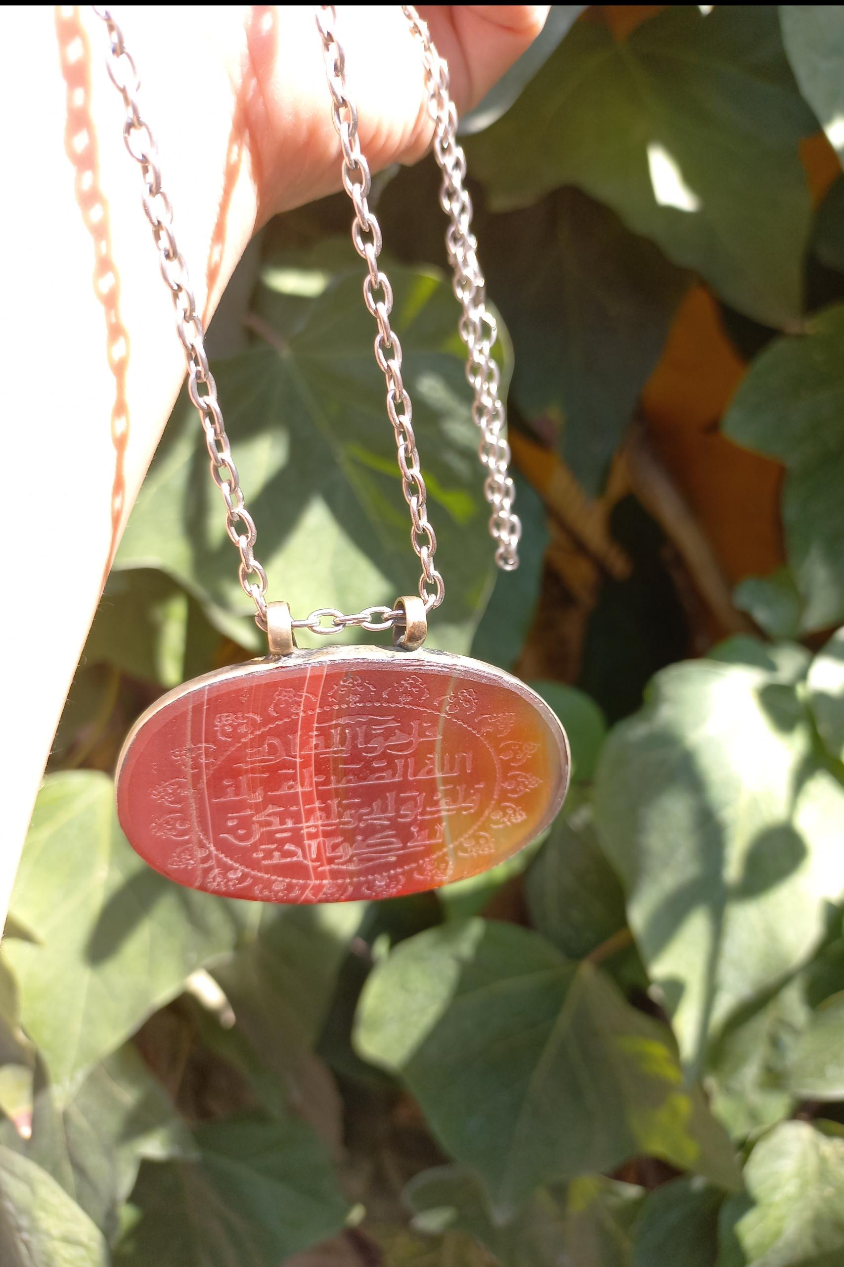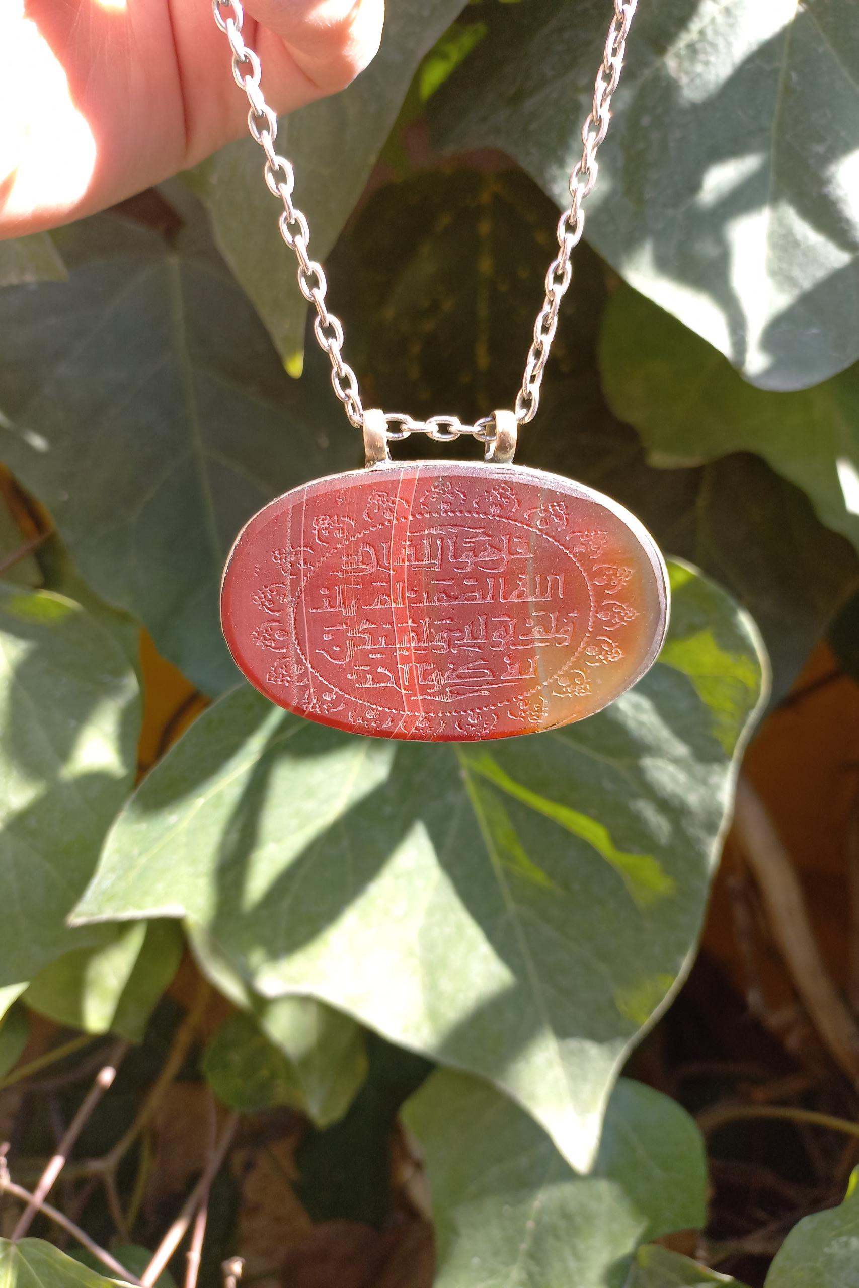 گردنبند طرح عقیق مصنوعی حکاکی شده سوره توحید
