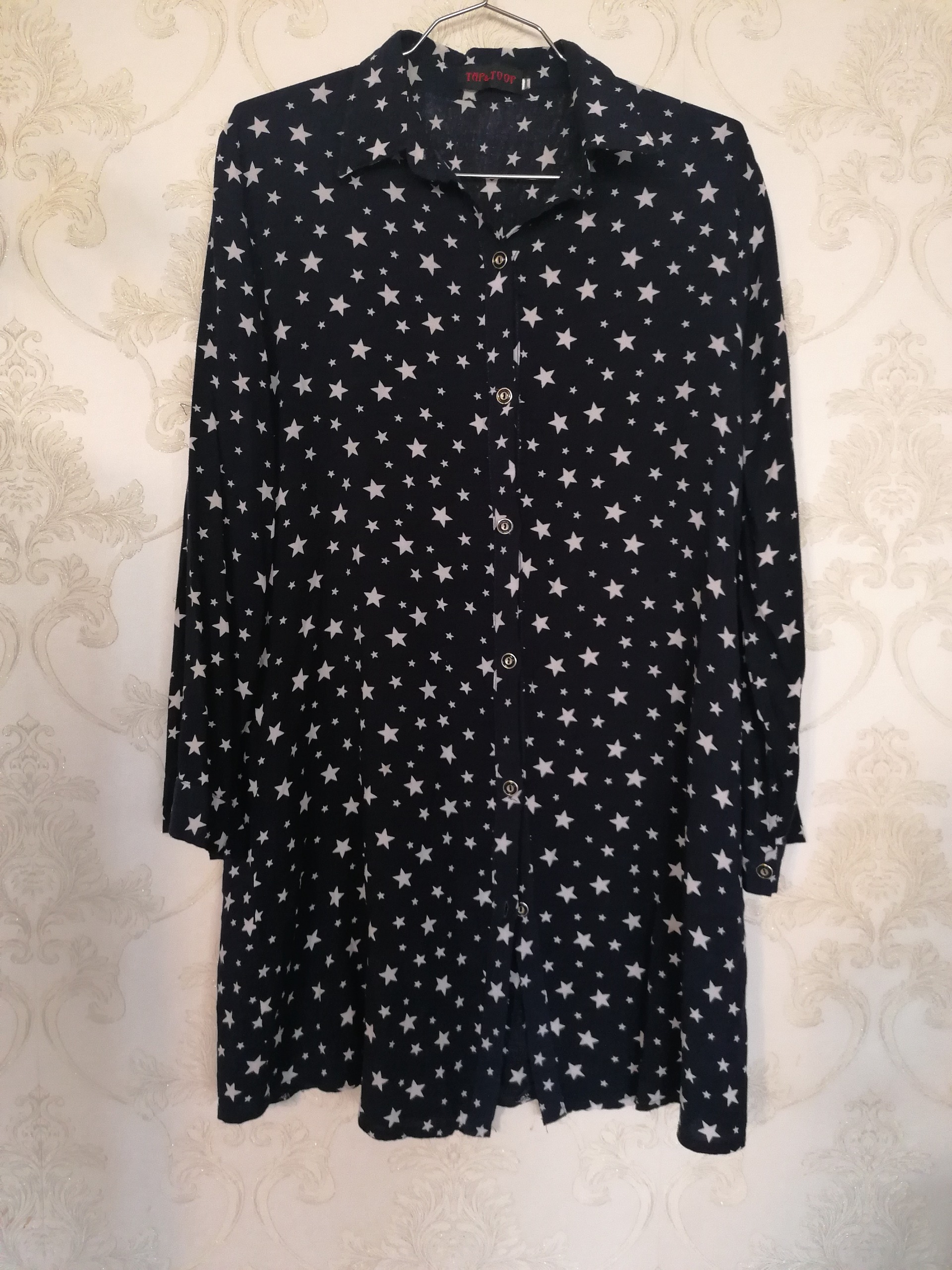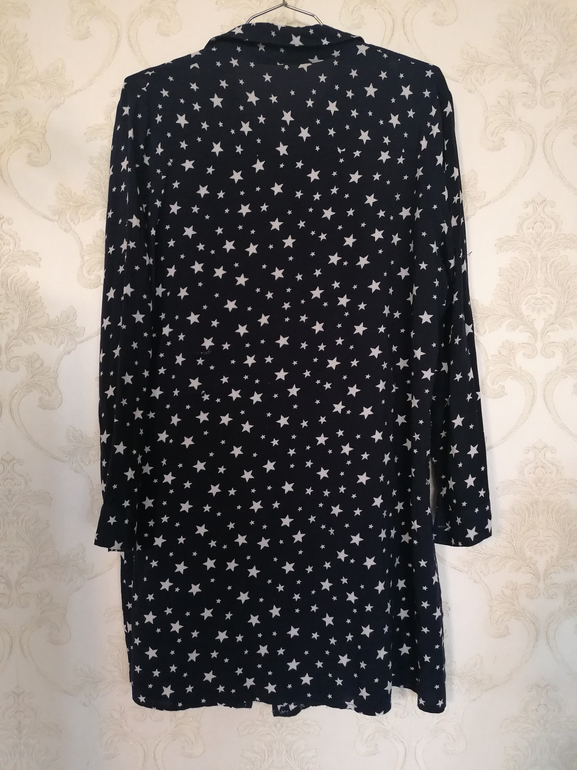 قد 85 و دور سینه 100 الی 102 و دور باسن 114 و قد استین 55 و استین مچی و پاگن دار و قابلیت تا زدن دارد و جلو لباس دکمه کاربردی