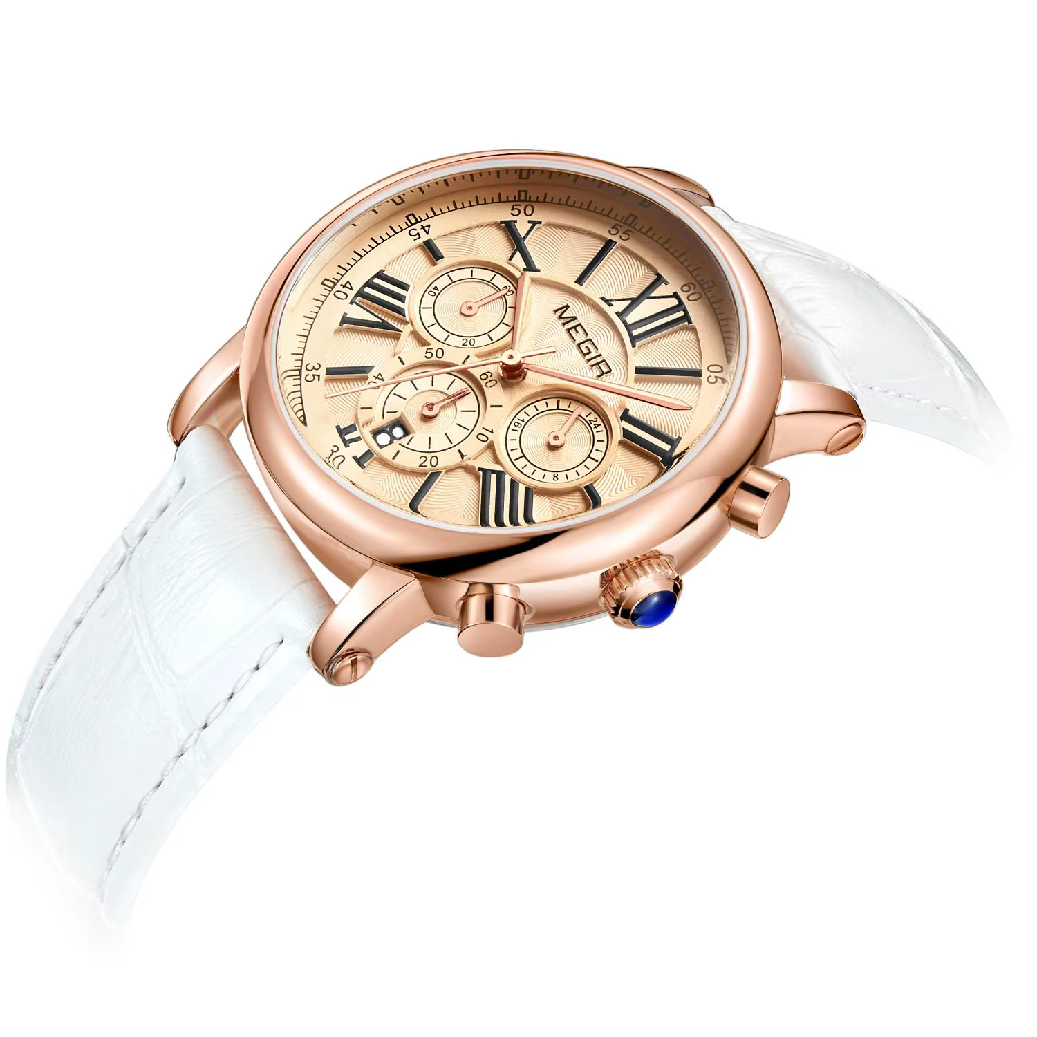 ساعت چرم زنانه سه موتور برند مگیر مدل 2058