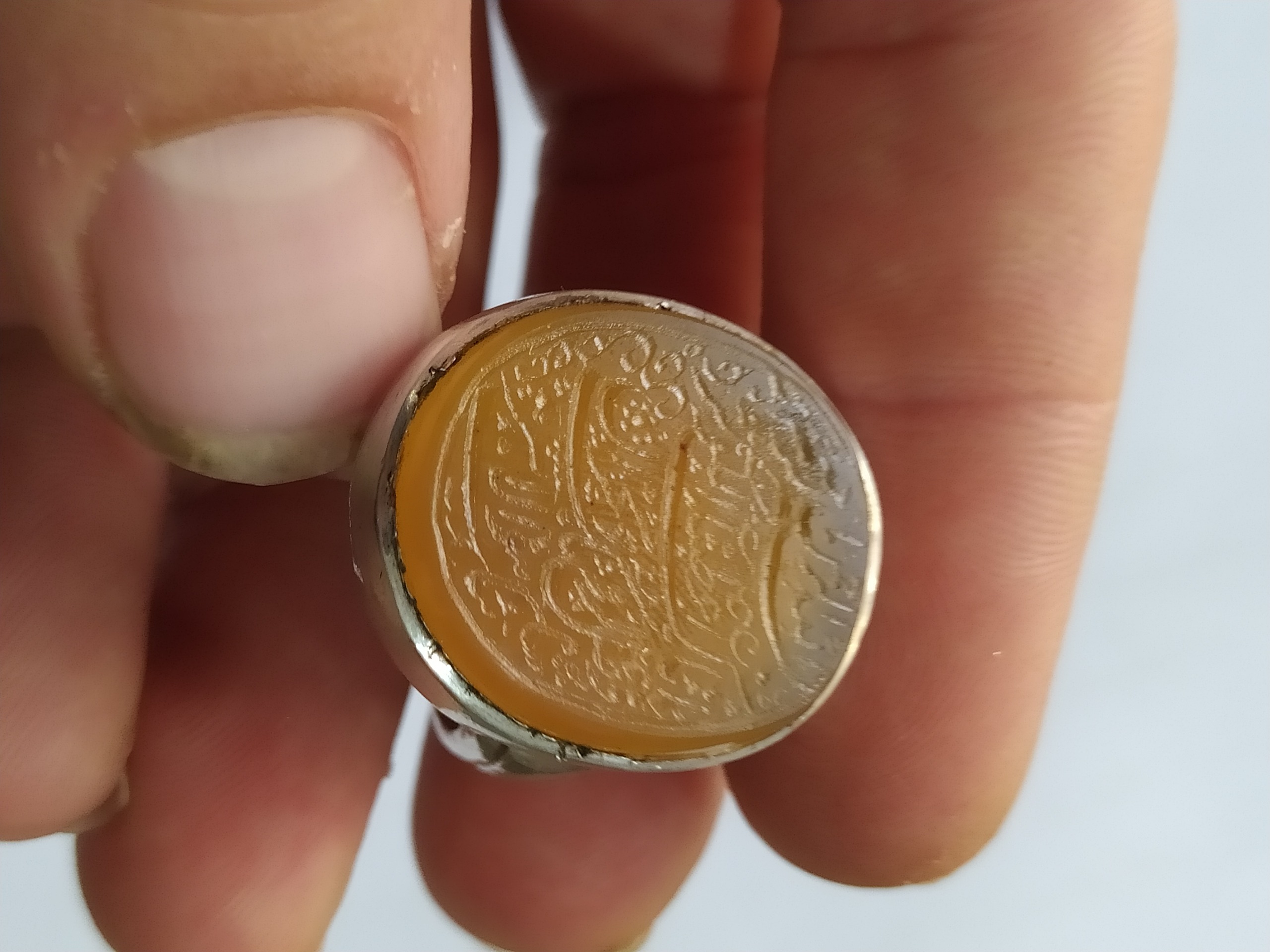 انگشتر نقره دستساز عقیق خطی خوشدست عیار 925