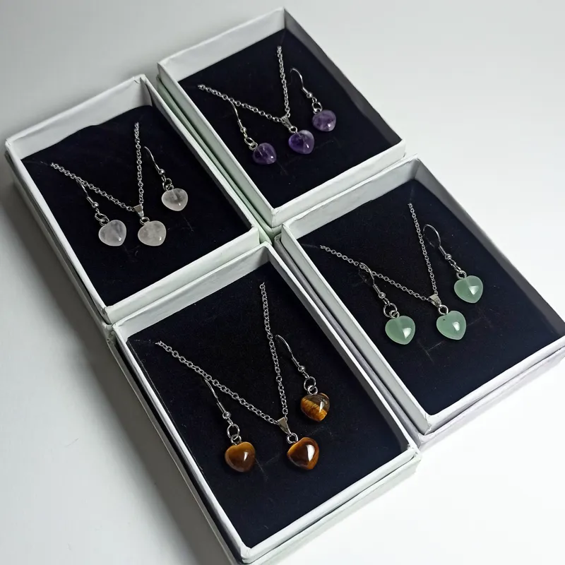 4 چهار عدد نیم ست سنگی سنگ های معدنی تراش قلب ظریف و زیبا