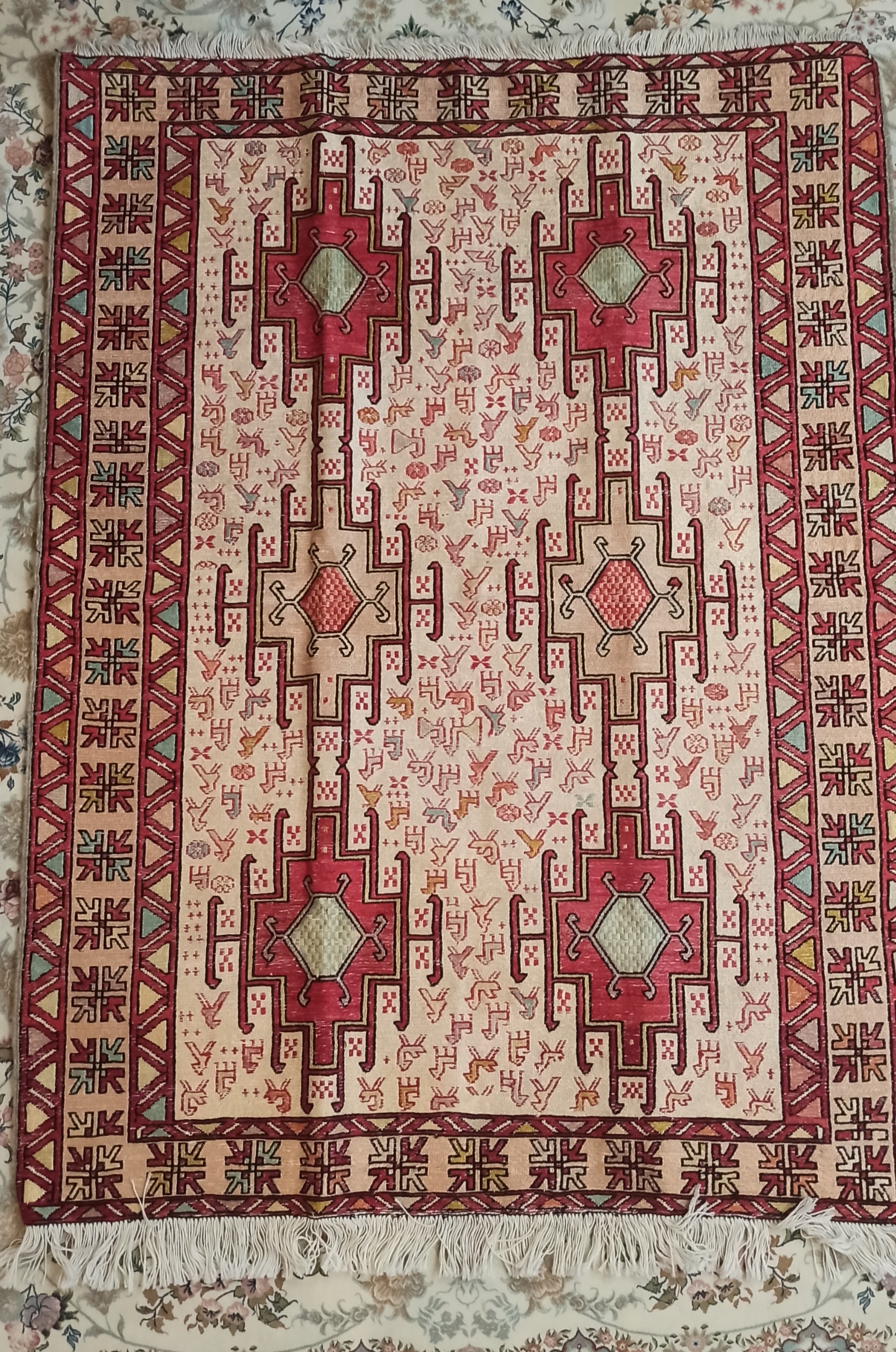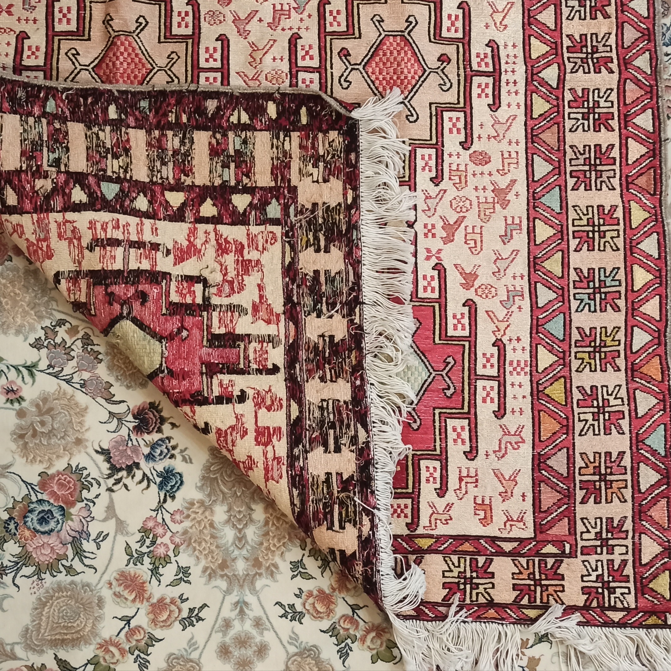 گلیم قالیچه توافقی دستبافت نیم ابریشم مغان ورنی
