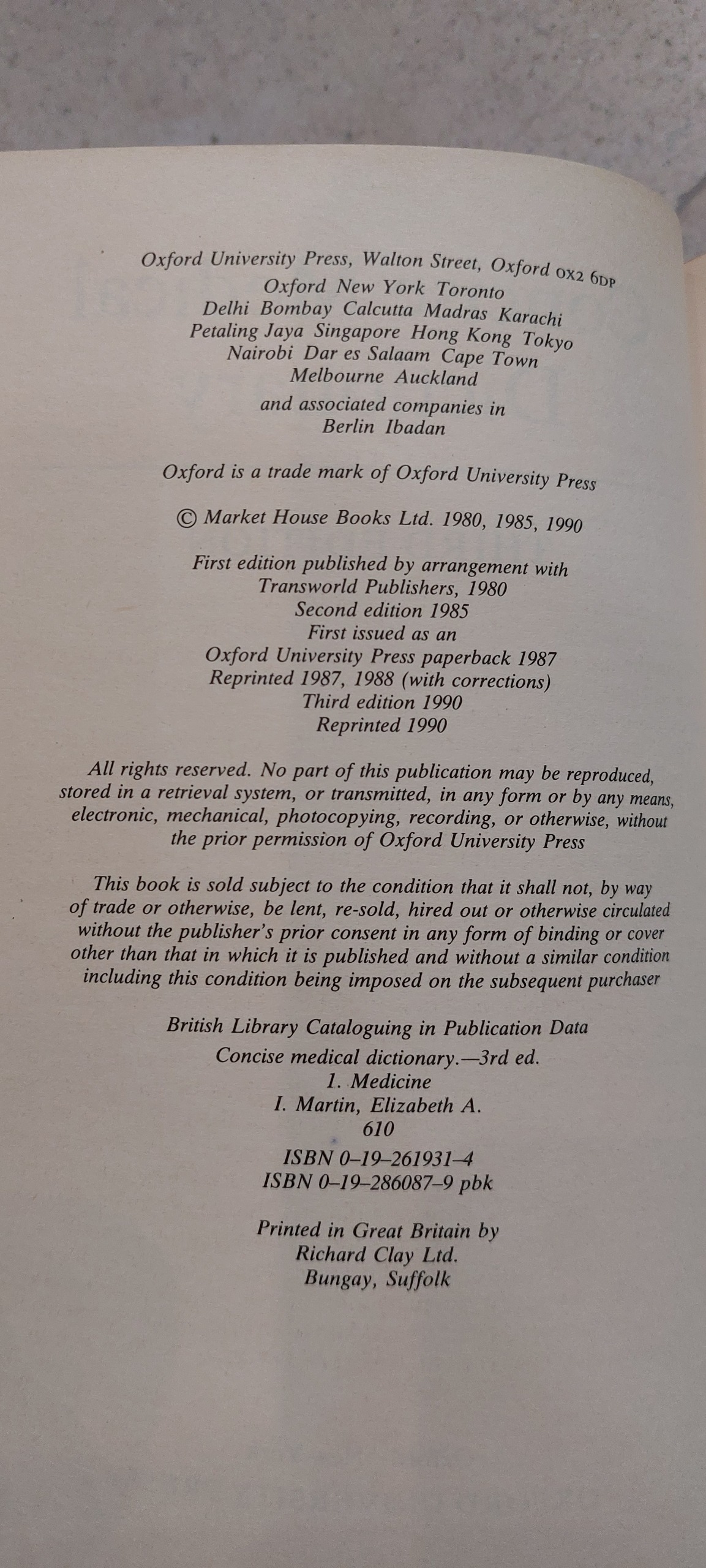 دیکشنری انگلیسی به انگیسی پزشکی کوچک قدیمی چاپ آکسفورد