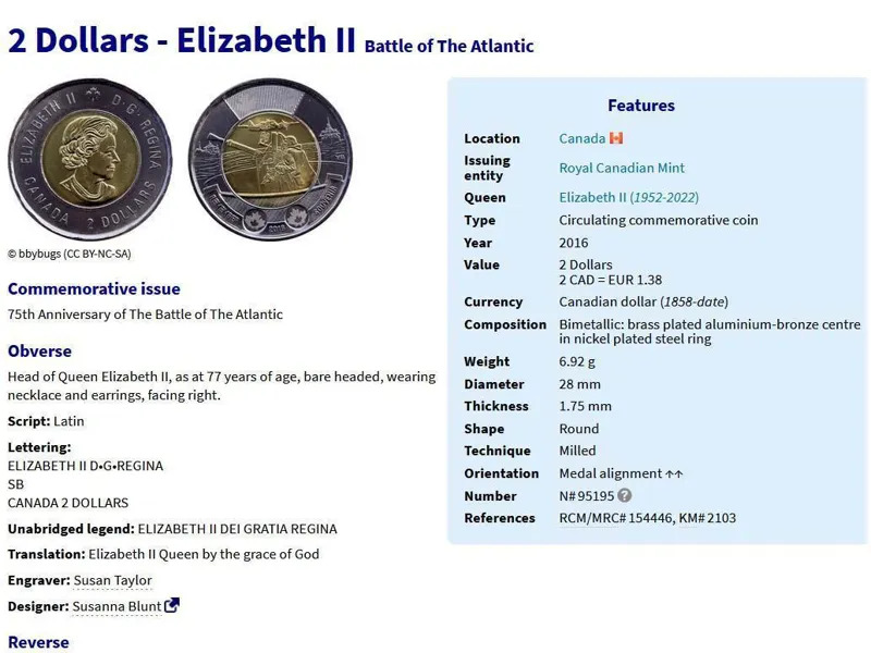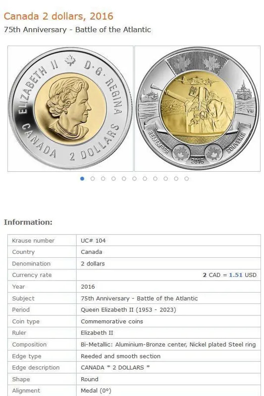 سکه یادبودی 2 دلار کانادا 2016 (نایاب)