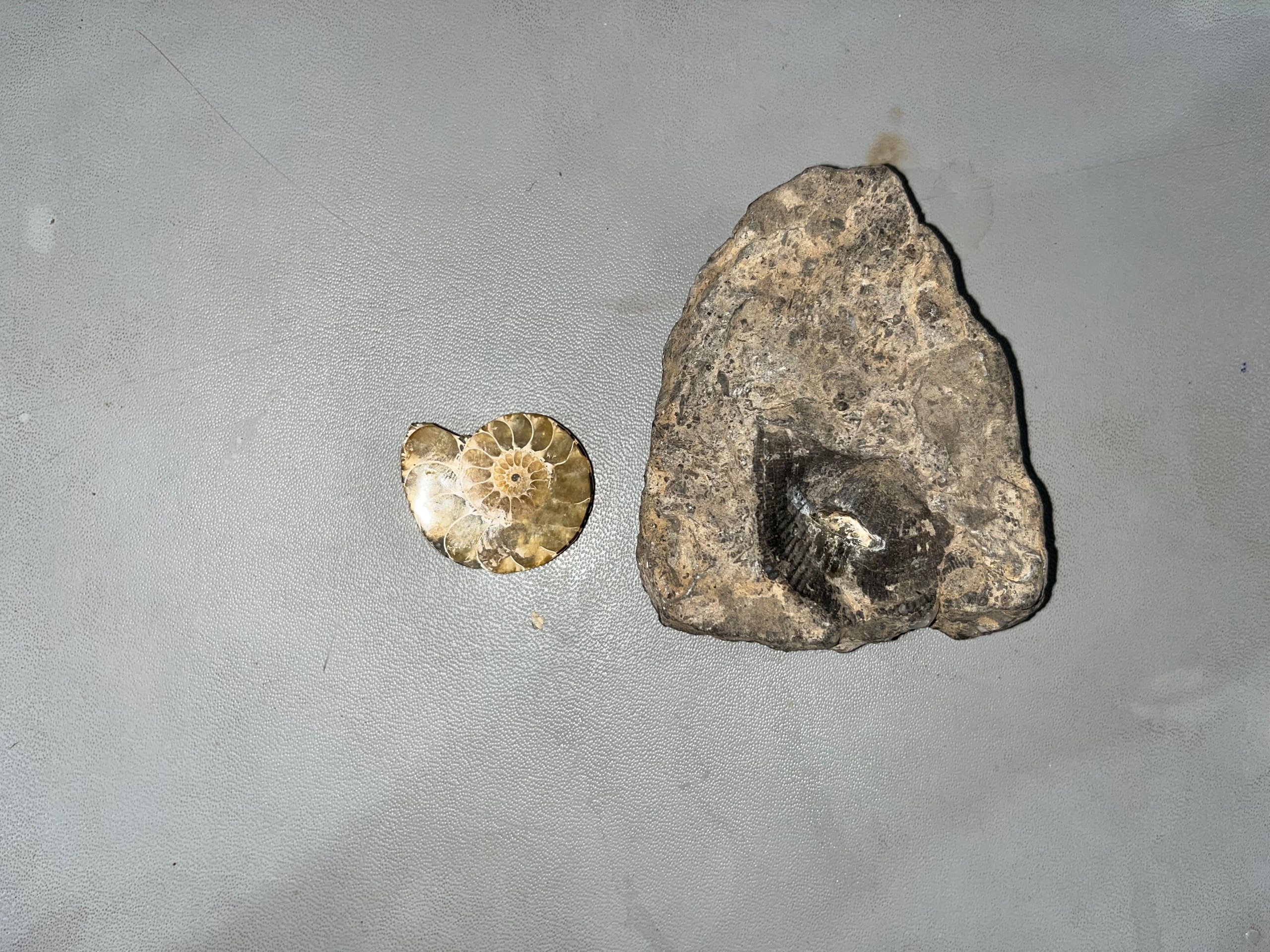 یک عدد فسیل آمونیت + یک عدد فسیل صدف دوکفه ای