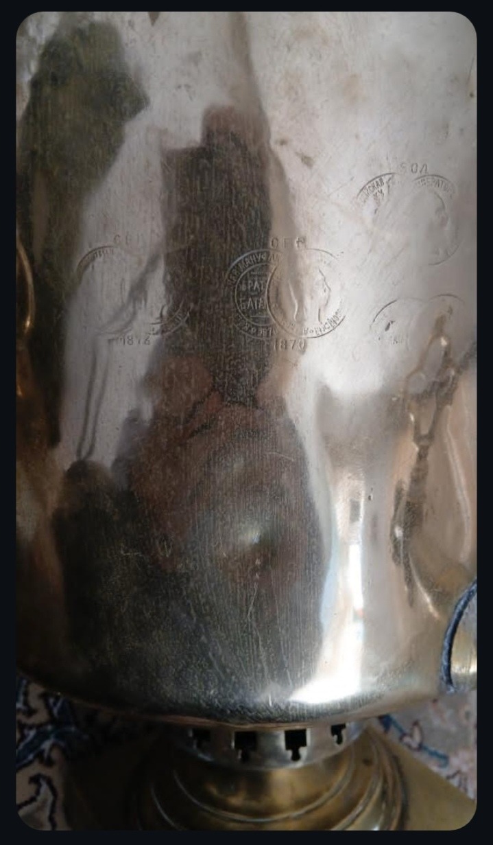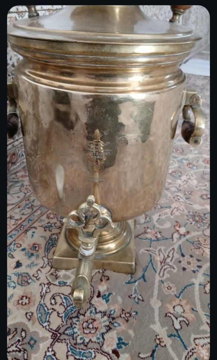 سماور لیتری نیکلای روسی با بیش از حدود100سال قدمت سالم ودارای 27 عدد مهر تاریخ دار سوالی هم دارید قبلش در خدمتم جنس برنجی