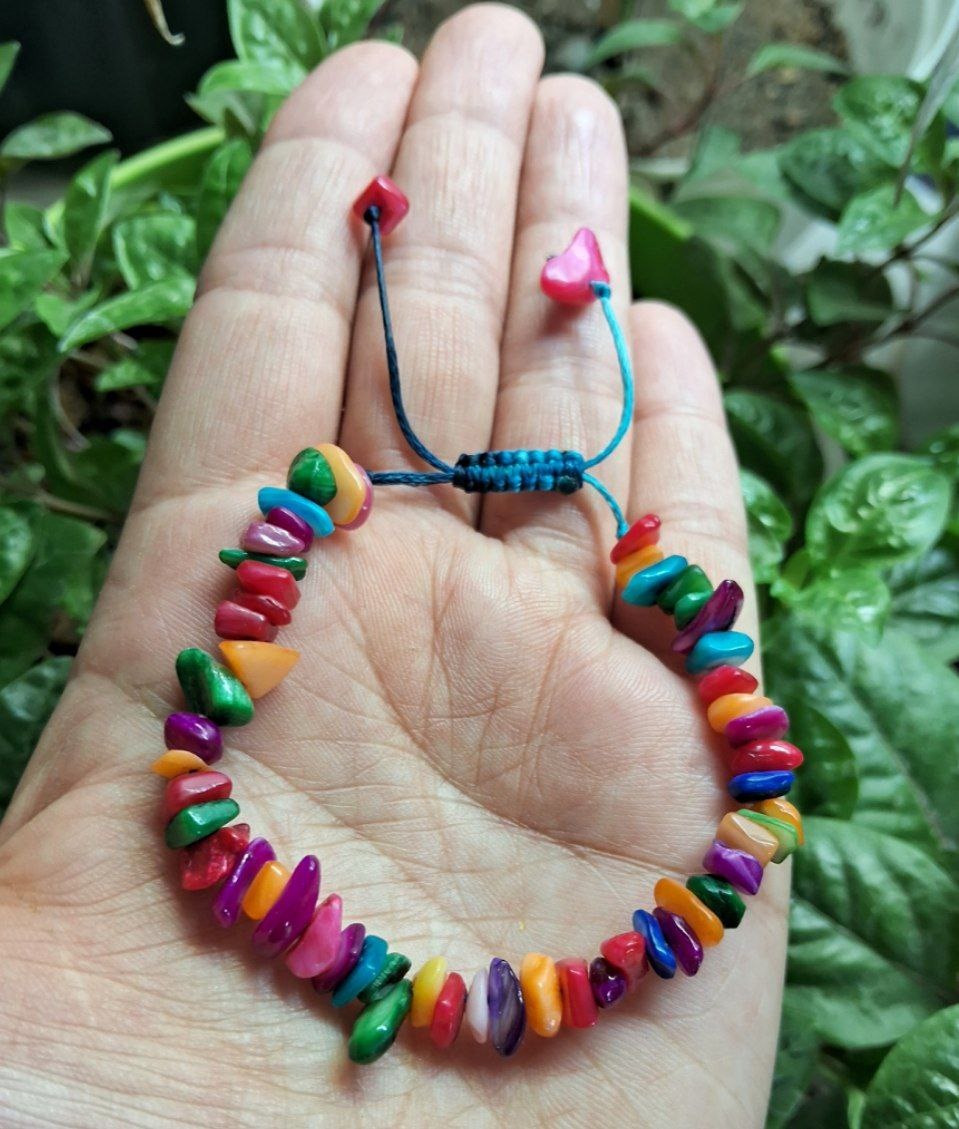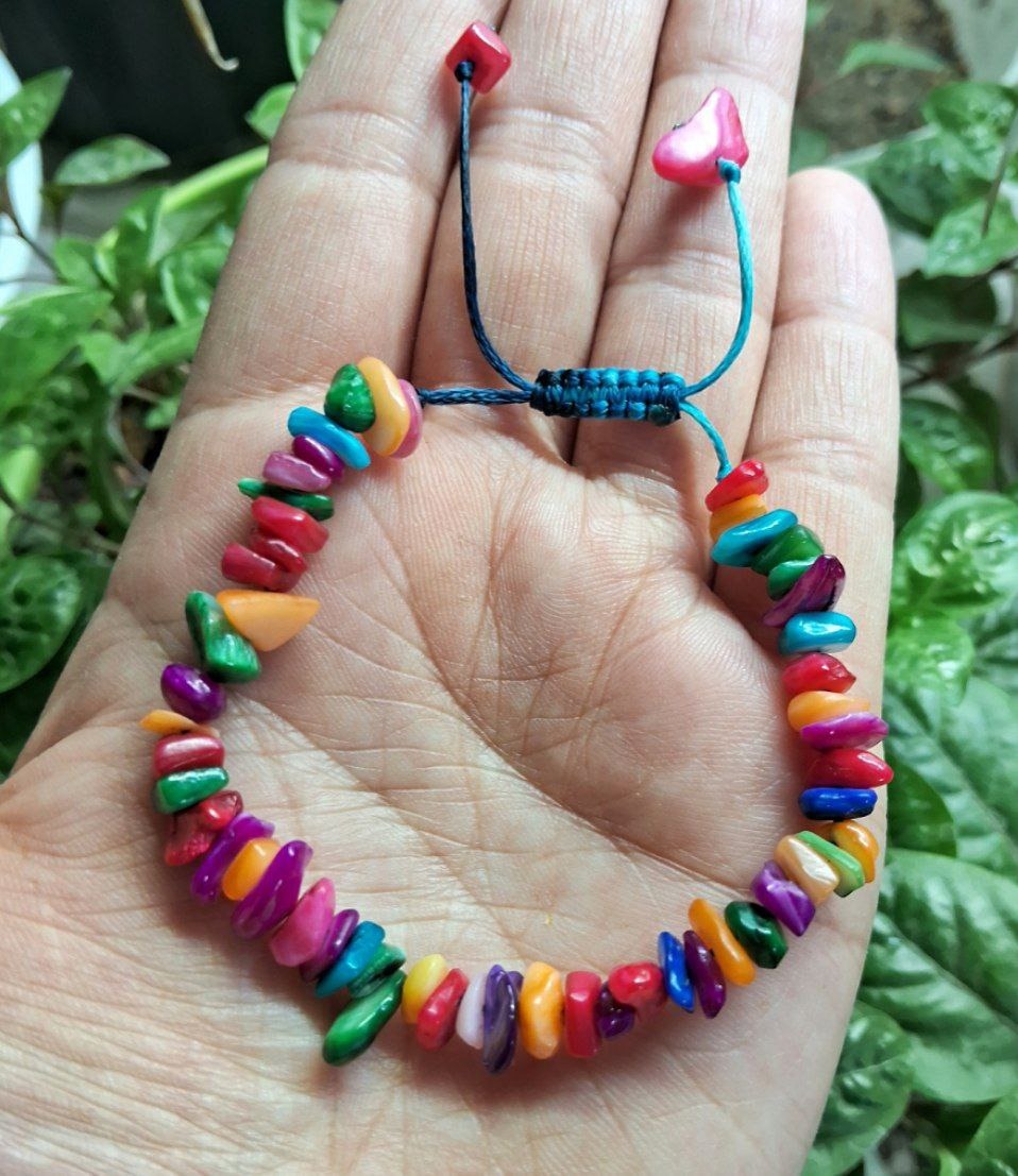 دستبند فری سایز  صدف طبیعی بی شکل رنگی