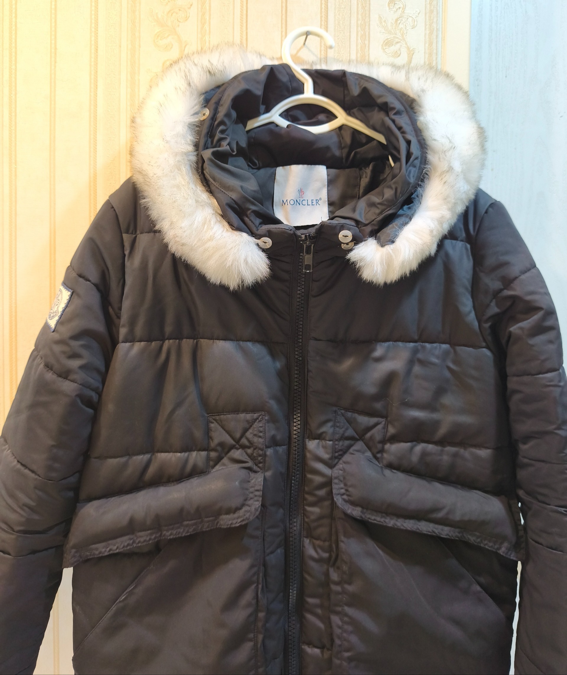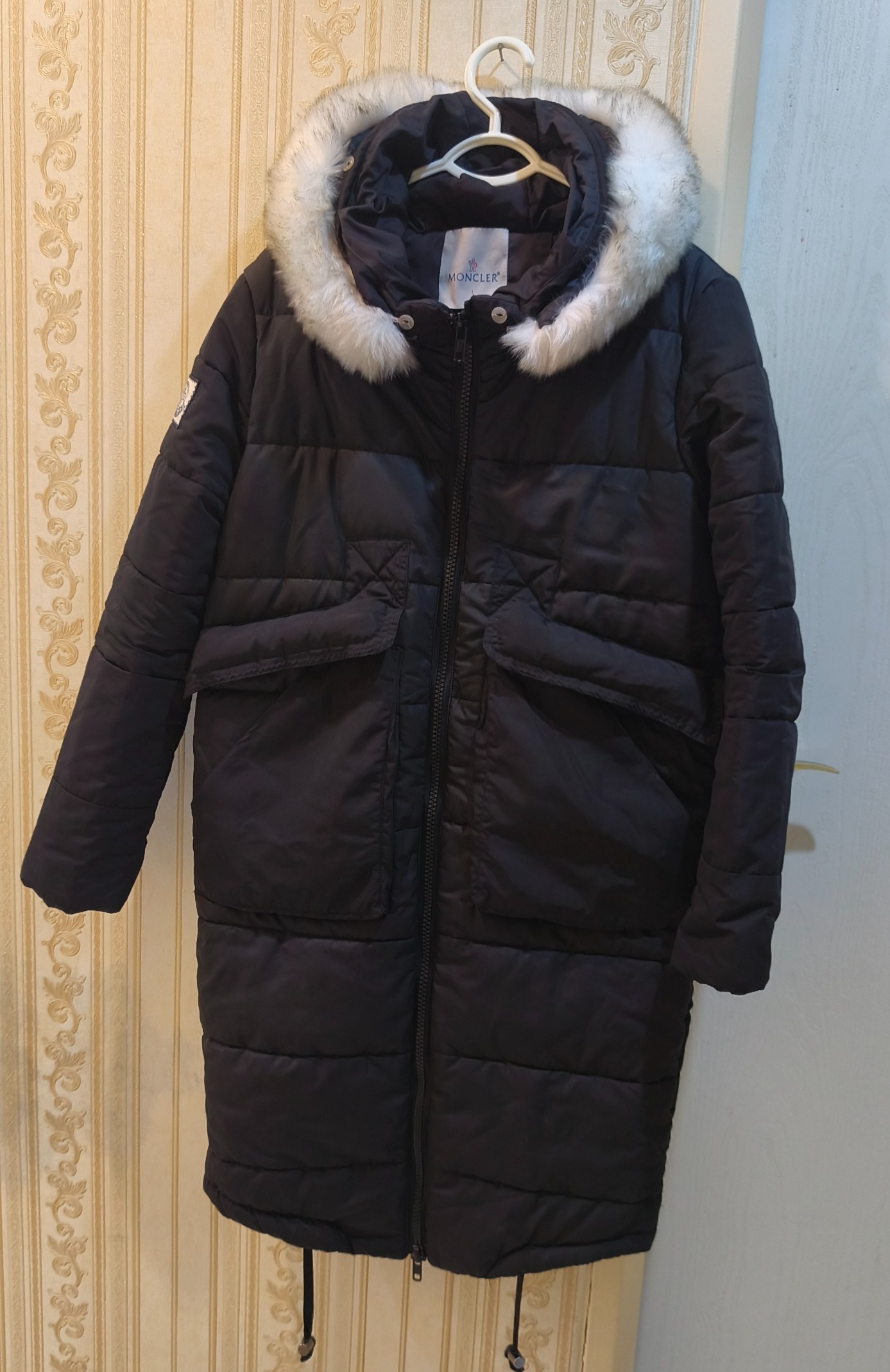 کاپشن زنانه مارک مونکلر Mocler . مارک ایتالیایی است . کلاهش دارای خز سفید است که با دکمه وصل شده و قابل جدا شدن است جنسش بارانی است سایزش 38است و به 40 هم میخوره بسیار زیبا و گرم است . کاپشن سالم میباشد