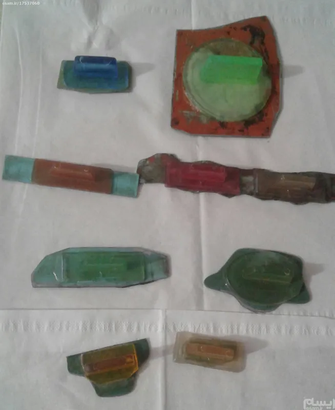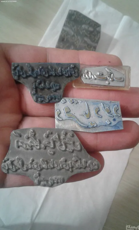 یک،مهر مربوط مهر وزارت جنگـ بوده یکی دیگر مربوط،دفتر یادبود است یکی دیگر مربوط شرکت ملی گاز ایران .دو عدد از ان مربوط به تاسیس خیاطی خانه بودن تاریخ دارن .یک عدد مربوط به حرم مطهر بوده ودیگر مهر جشن ها خاص وتاریخ دار هست دسته ها سالم هستند کمیاب سالم دیگری مهر مشهد تاریخ 1349است.