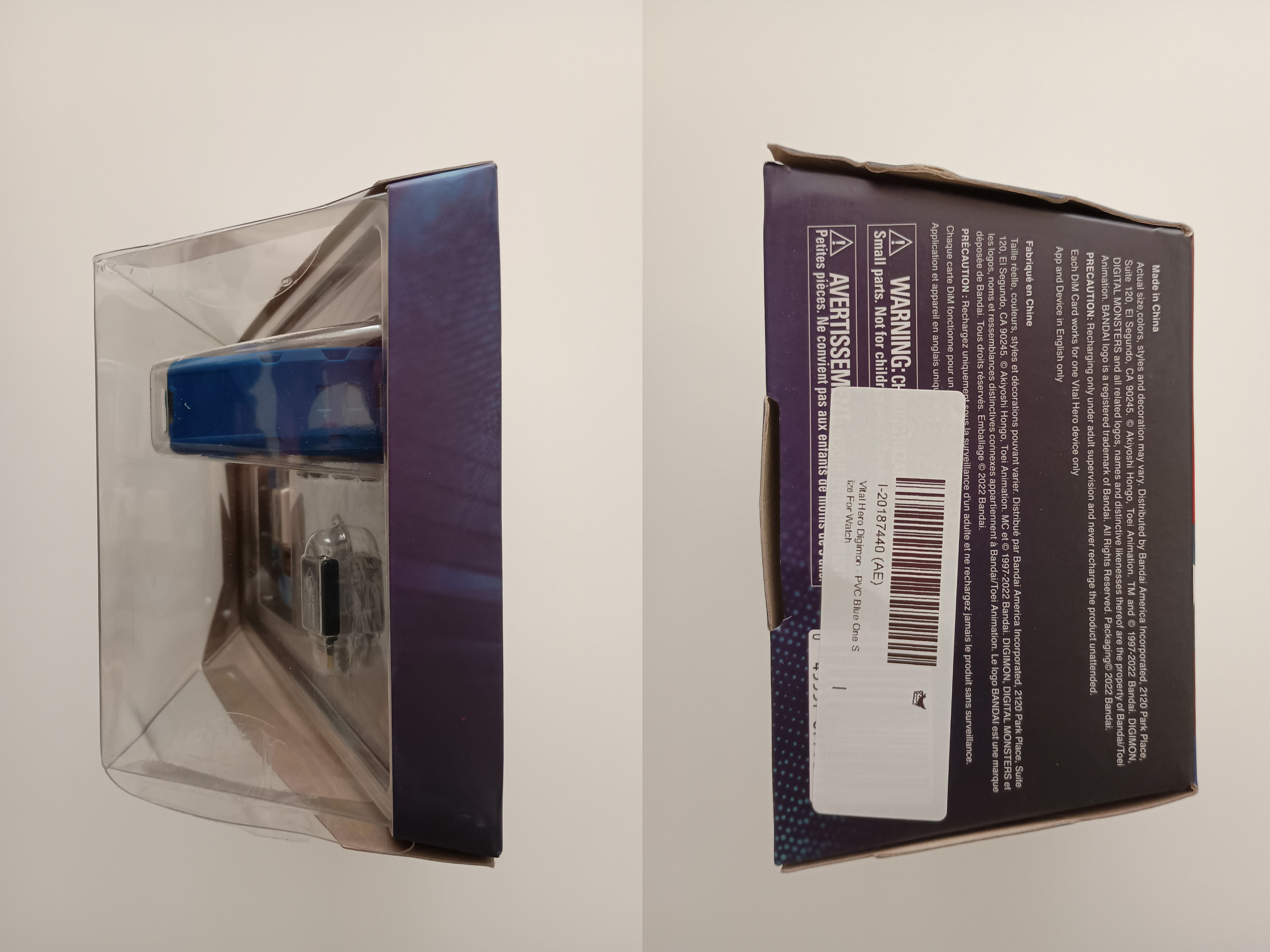 1 عدد مچبند بازی دیجی مون Vital Bracelet Digital Monster طرح آبی به همراه دیم-کارت متفاوت Blizzard Fang از ست دیم-کارت سری 1؛ ساخت شرکت Bandai دارای صفحه رنگی، اسپیکر و امکان شارژ از طریق USB. پلمب جعبه باز شده است اما مچبند و دیم-کارت نو، سالم و