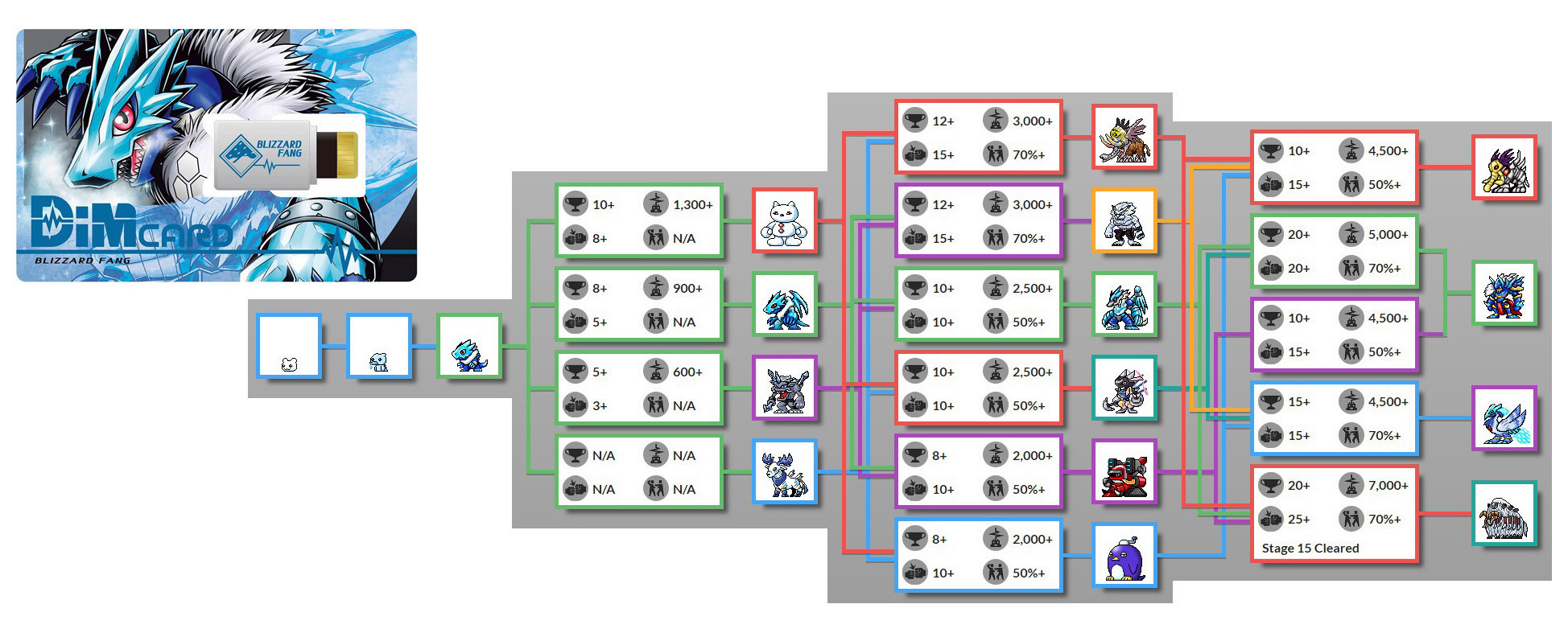 همچنین هر دیم-کارت شامل 15ماموریت اصلی است که در انتهای مسیر هر کدام، با یک دیجیمون مبارزه میکنید و در صورت شکست دادنش، آن مرحله را رد کرده و میتوانید ماموریت بعدی را انجام دهید. پاداش تکمیل هر 15ماموریت، آزاد شدن یک دیجیمون قدرتمند دیگر روی آن دیم-کارت است