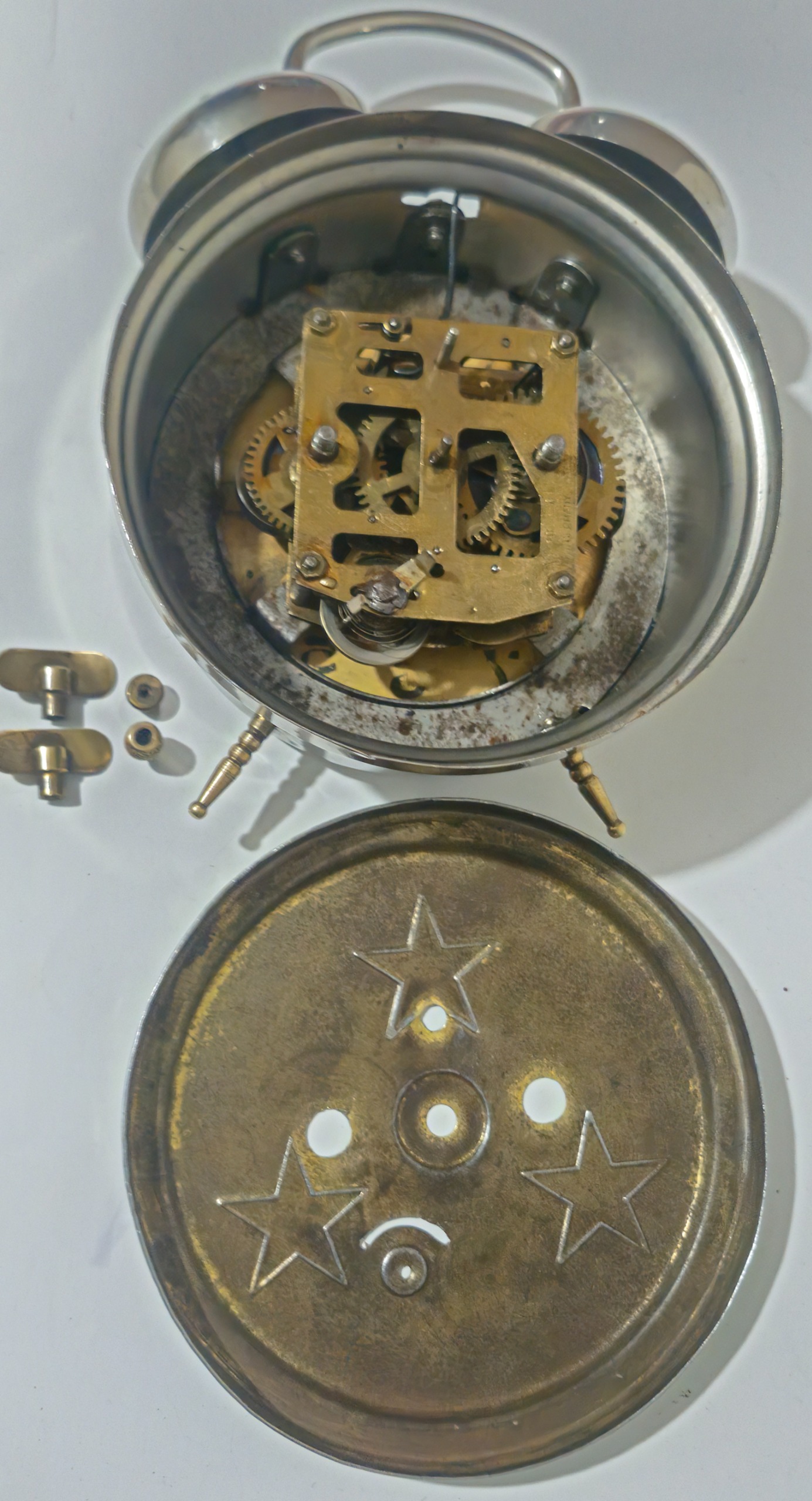 کارمیکنه.زنگ میزنه.ولی جلو میره.تنظیم میخاد.کنار بدنهُ پشت ساعت کمی زنگ زده.قسمت کمی از صفحه پاره شده.مطابق باتصاویر میفروشم.
