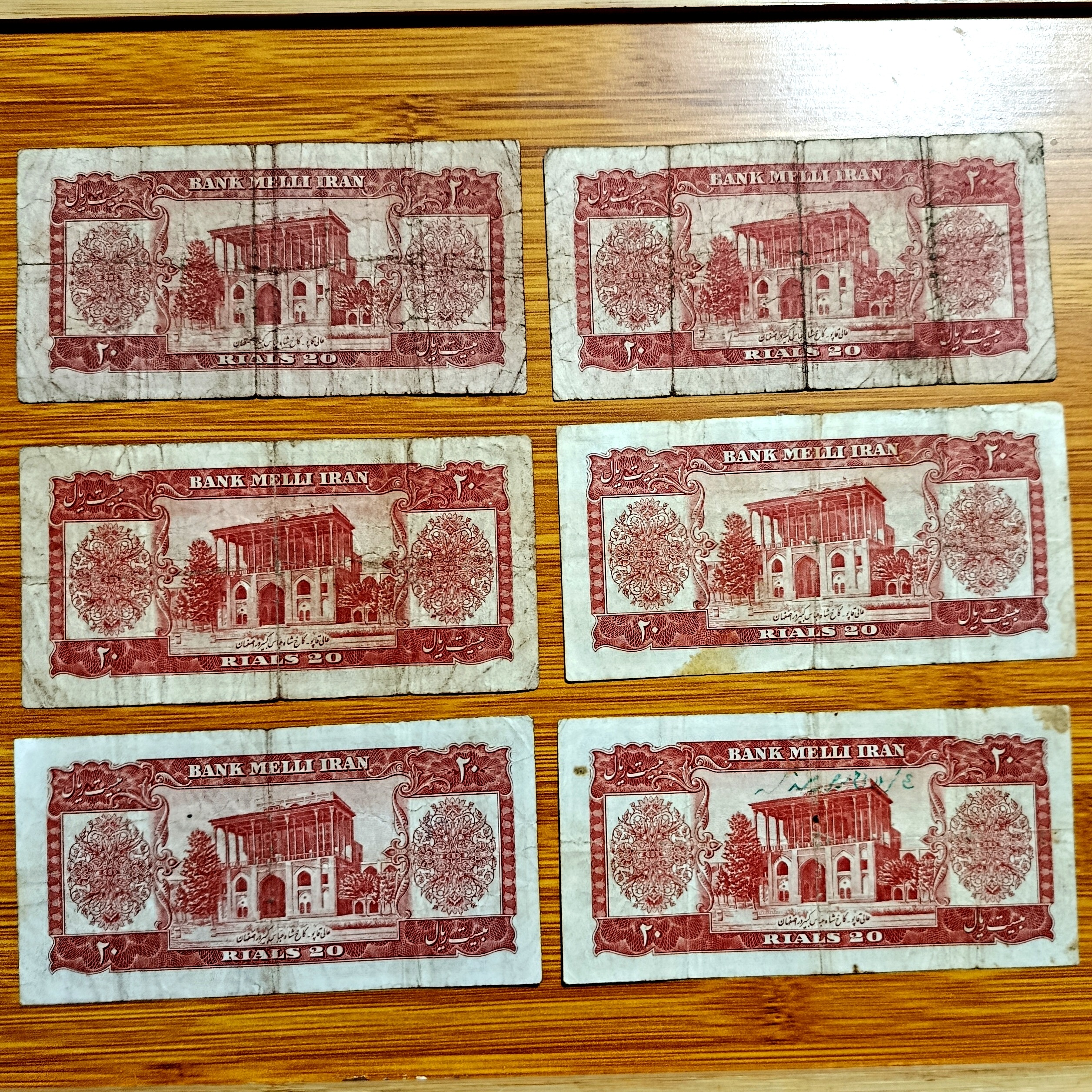 شش برگ اسکناس کارکرده 20 ریال پهلوی معروف به کراواتی با کیفیت مطابق تصویر