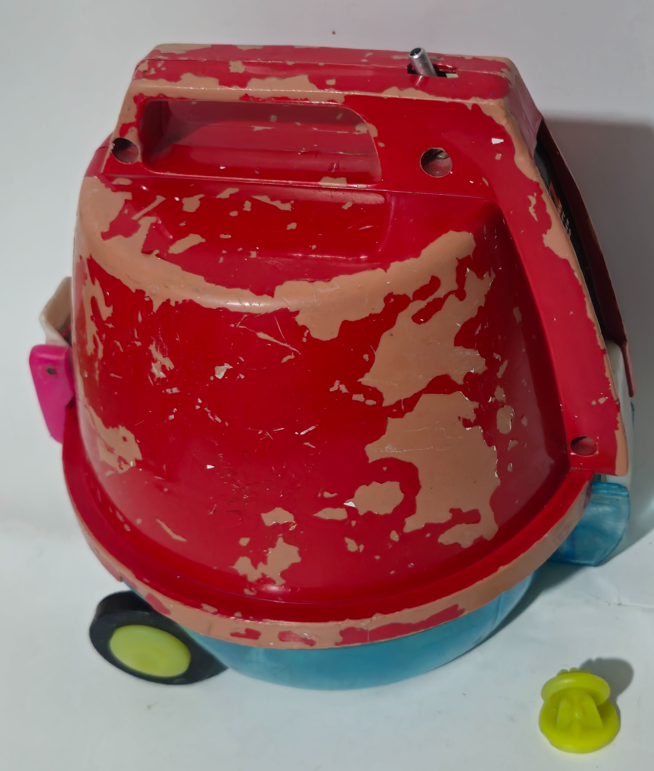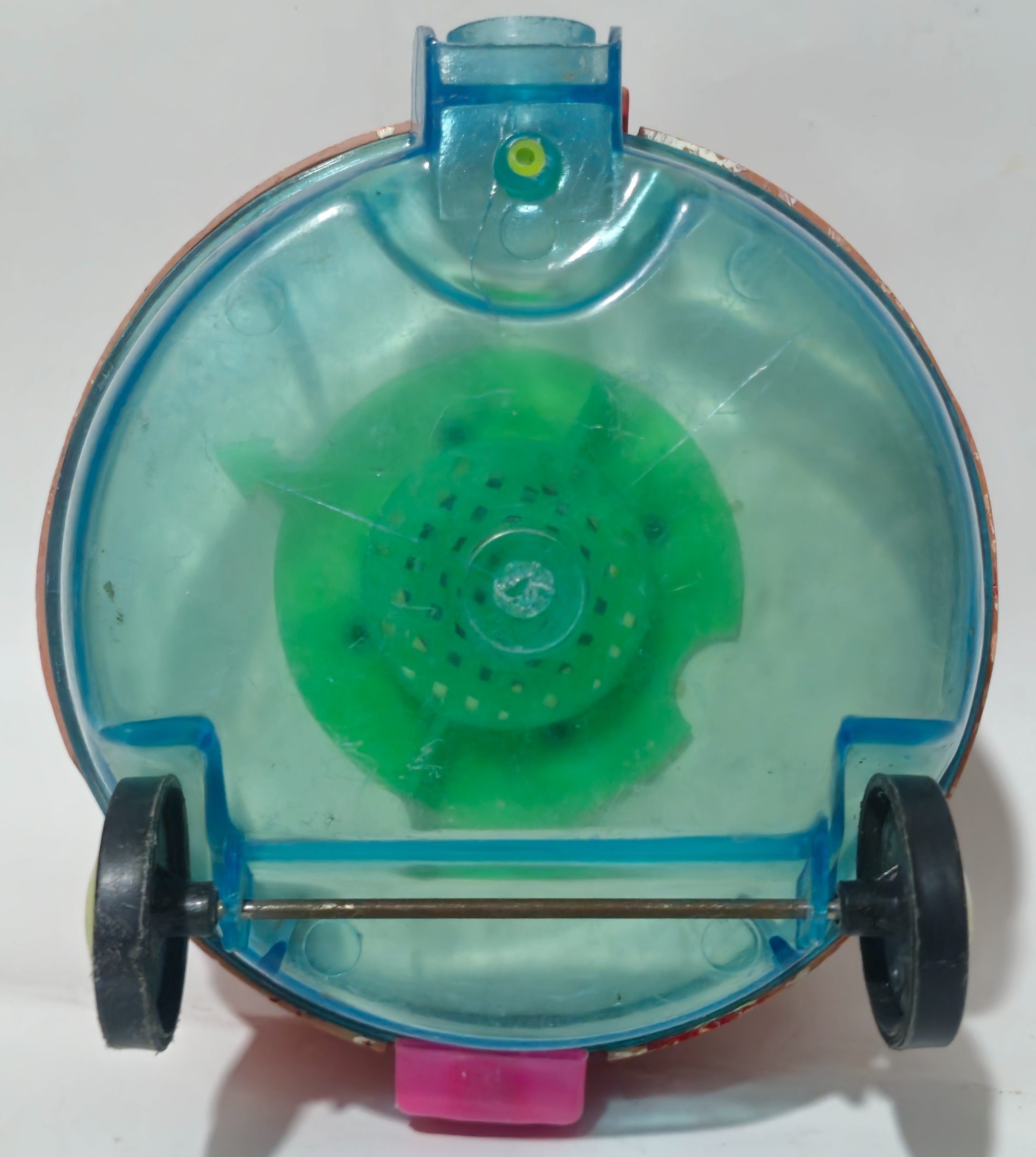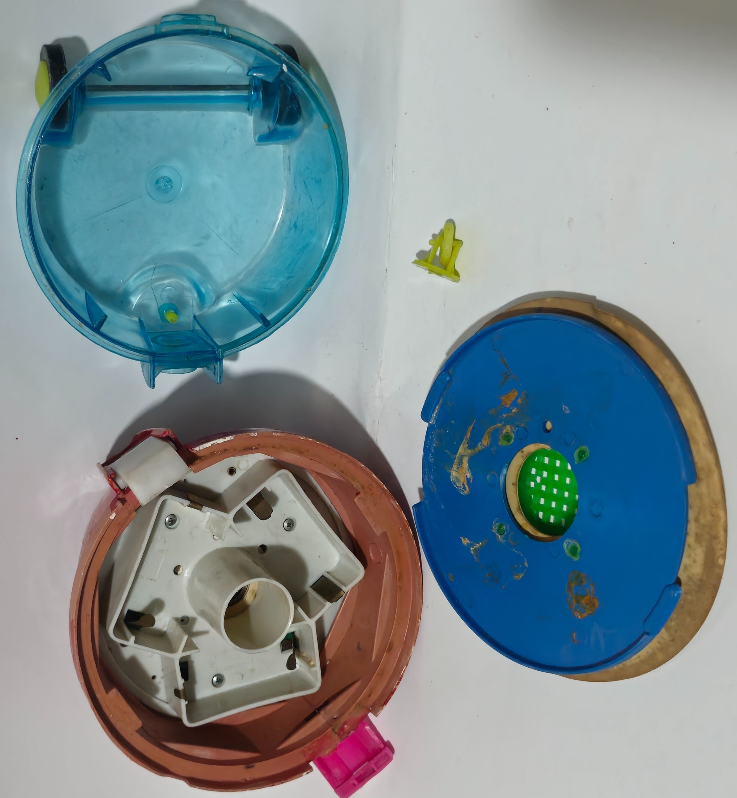 جنس پلاستیک ارتفاع 17 سانتیمتر.قطر 18سانتیمتر.وزن 450 گرم.چرخش کنده شده.رنگ روش رفته.کار نمیکنه.مطابق باتصاویر میفروشم.