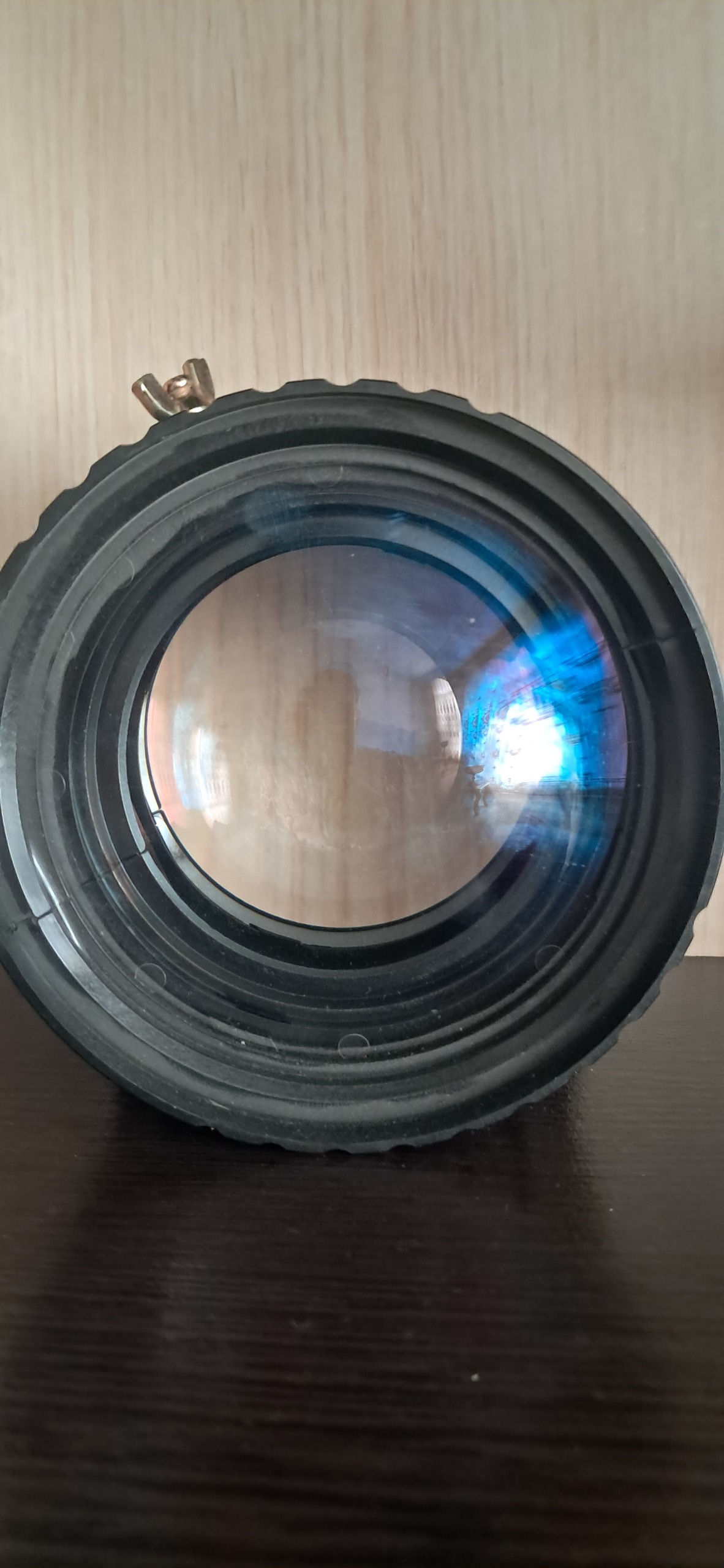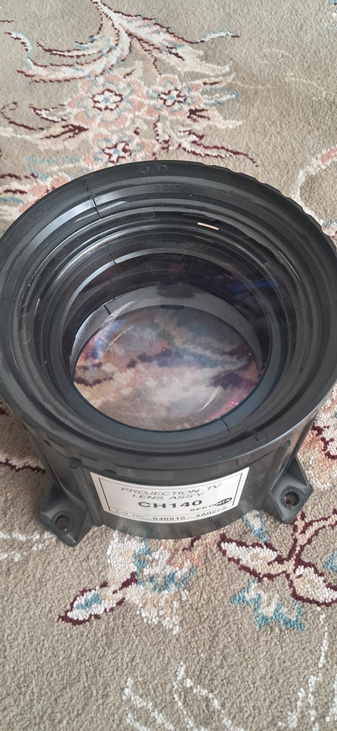 این لنز احتمالا مربوط به تلوزیون می باشد و از آن به عنوان ذره بین میتوان استفاده کرد.درشت نمایی بسیار بالا با امکان تغییر محدود فاصله کانونی .لنز از چند عدسی محدب و مقعر تشکیل شده .تعداد 6 عدد از این لنز موجود است .قیمت درج شده م بوط به یک عدد می باشد.قطرعدسی  لنز 10سانتی متر است