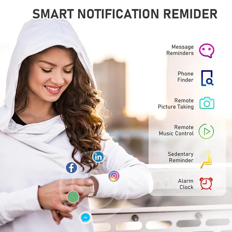 یادآوری سلامت و تندرستی : با یادآوریهای قابل تنظیمی که به شما کمک میکند تا یک روال سالم را حفظ کنید ، مراقب هیدراتاسیون و فعالیت خود باشید .