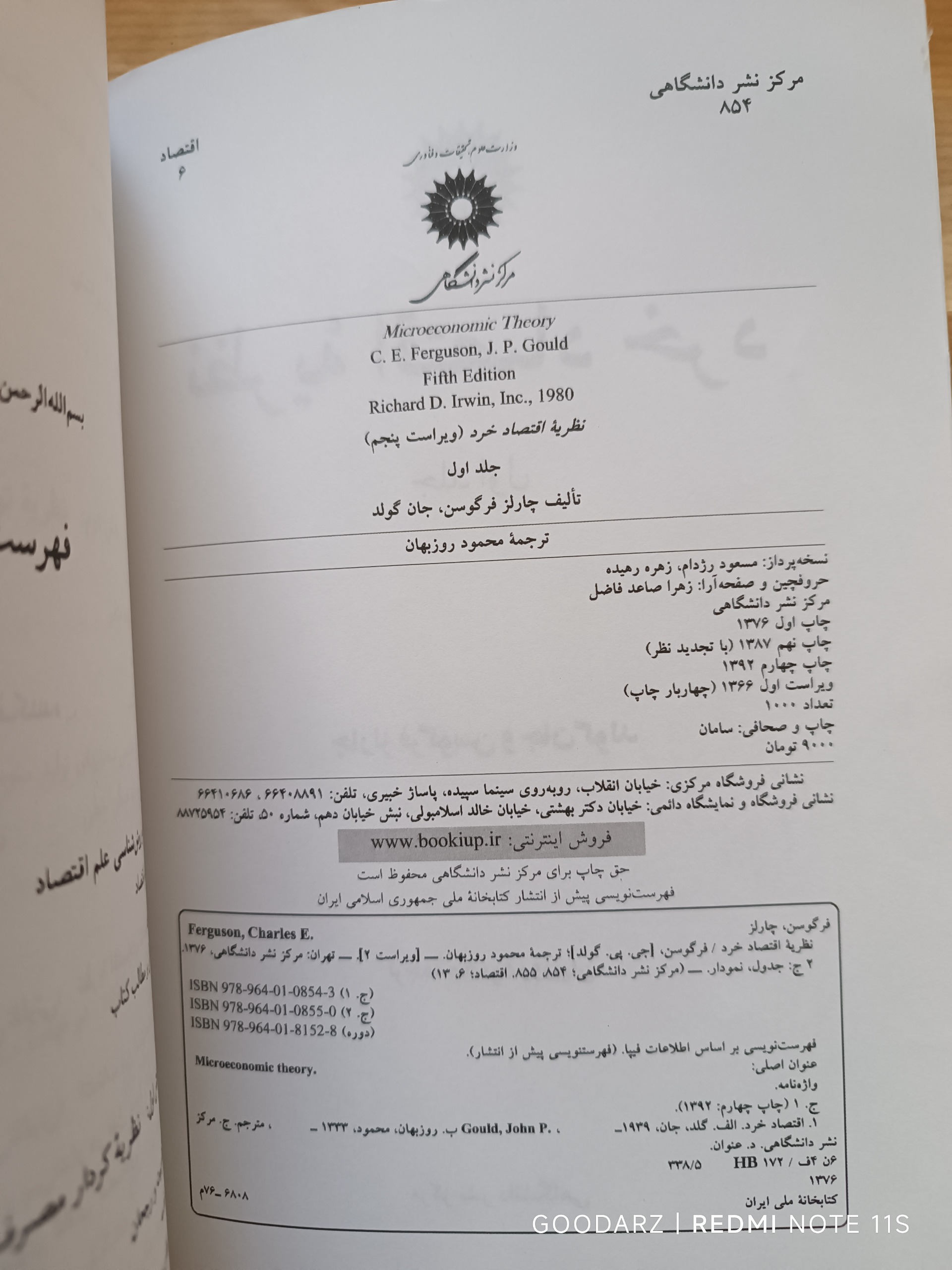 کتاب نظریه اقتصاد خرد جلد اول توضیحات دارد