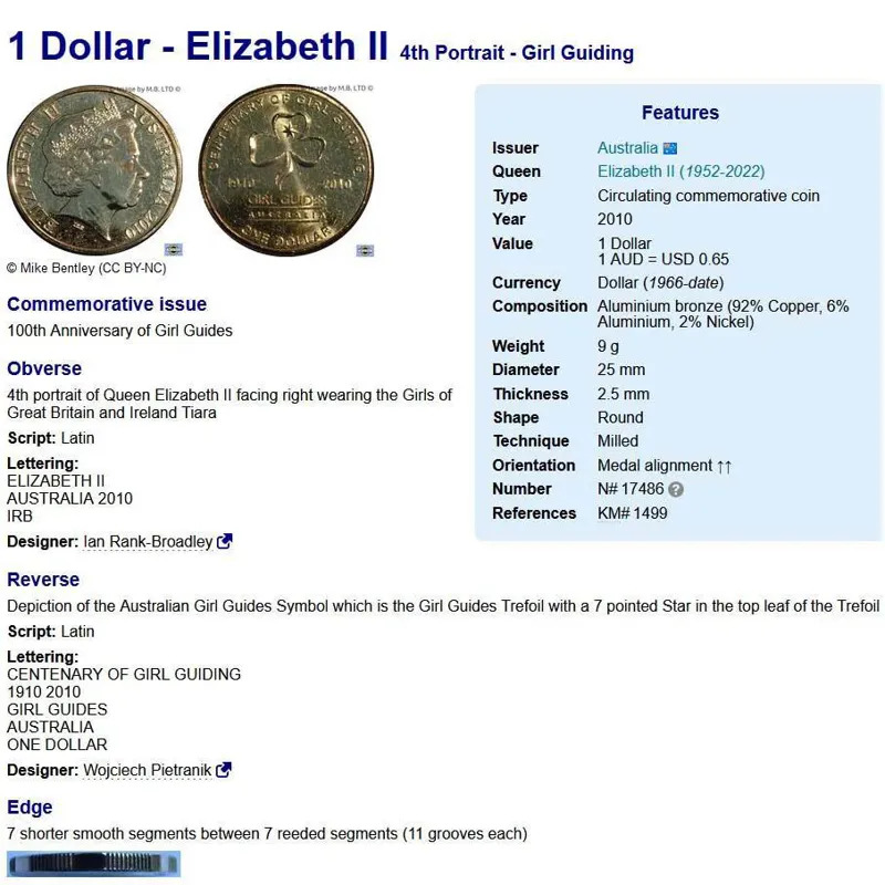 سکه یادبودی 1 دلار استرالیا 2010 (نایاب)