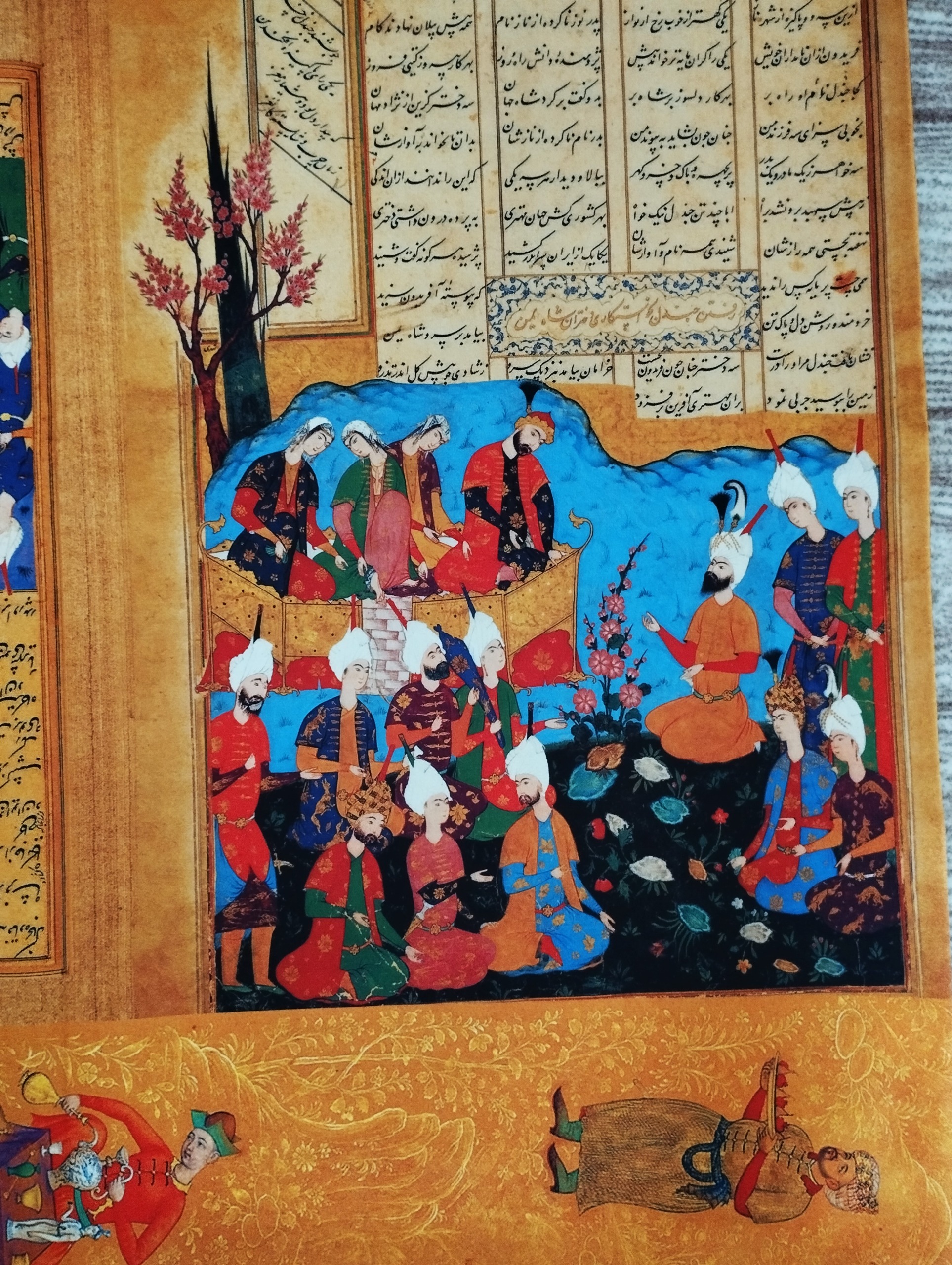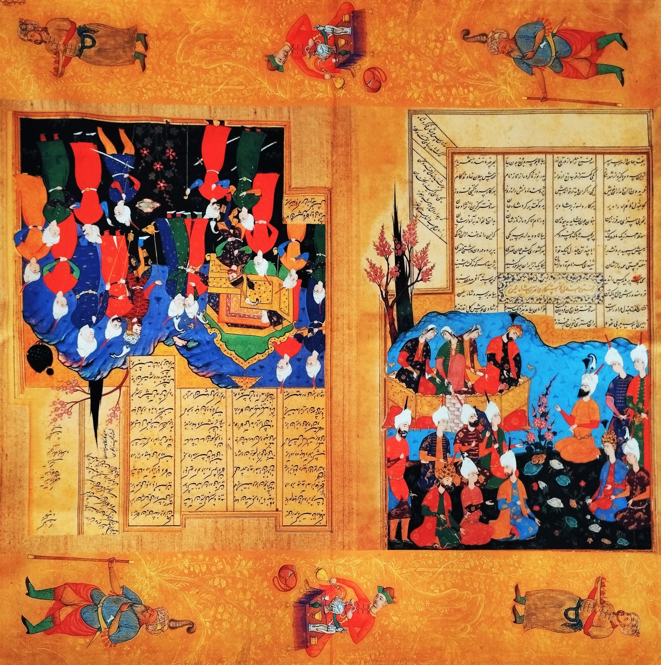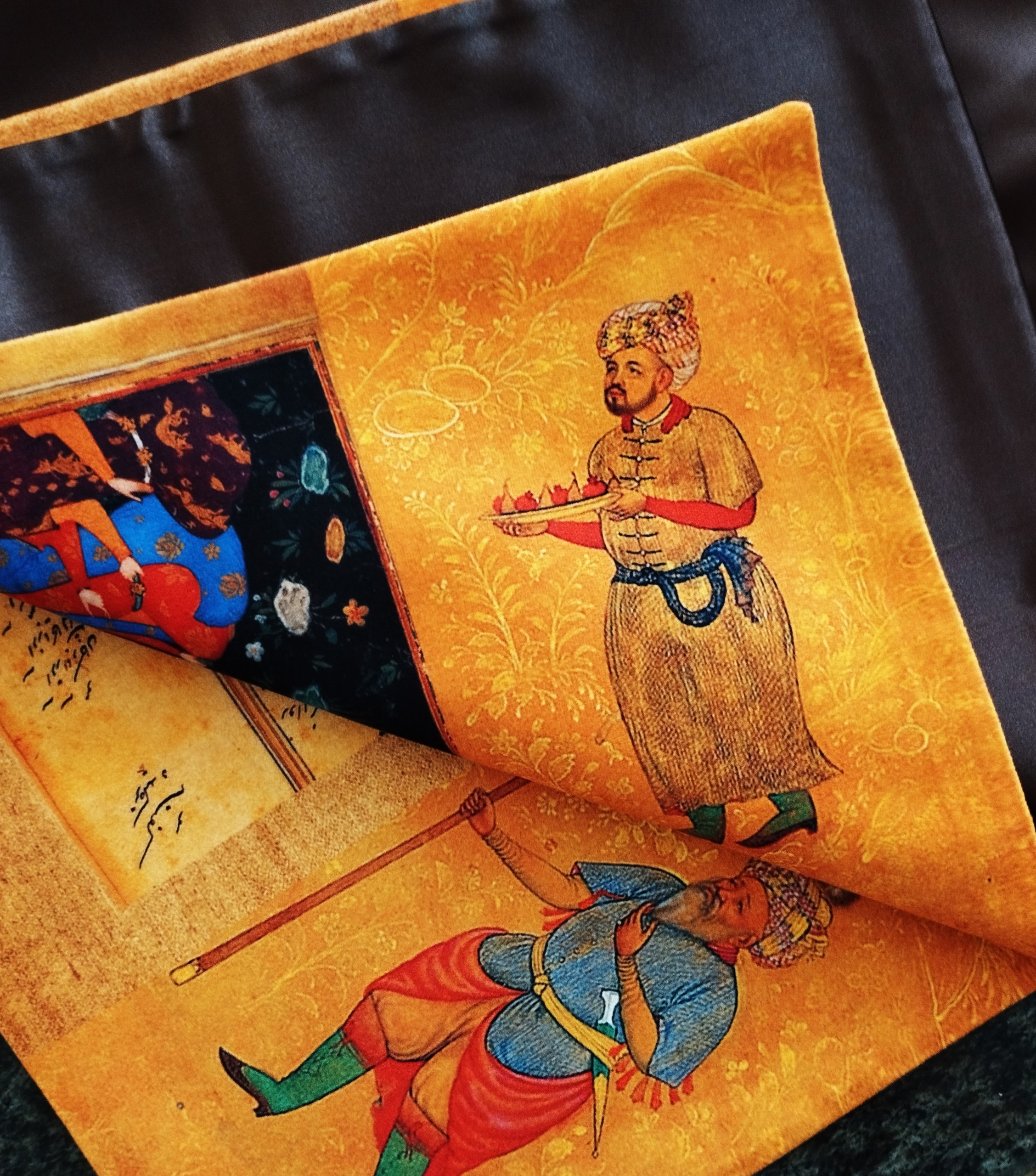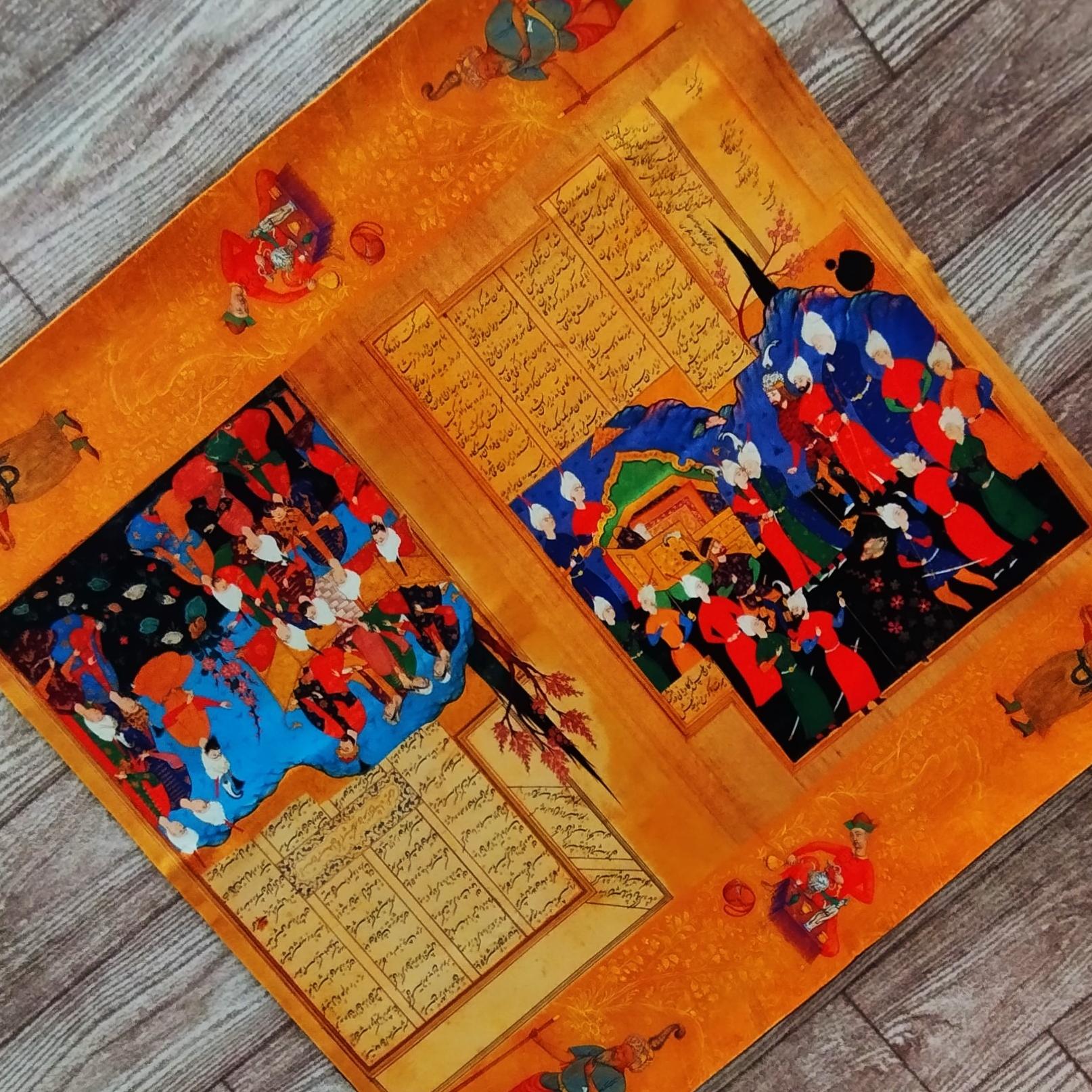 روی میـــزی چند منظوره طرح نگارگری ایرانی. یک متر در یک متر.