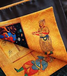 جنس قسمت طرح نگارگری: مخمل / جنس پشت: ساتن قهوه ای.