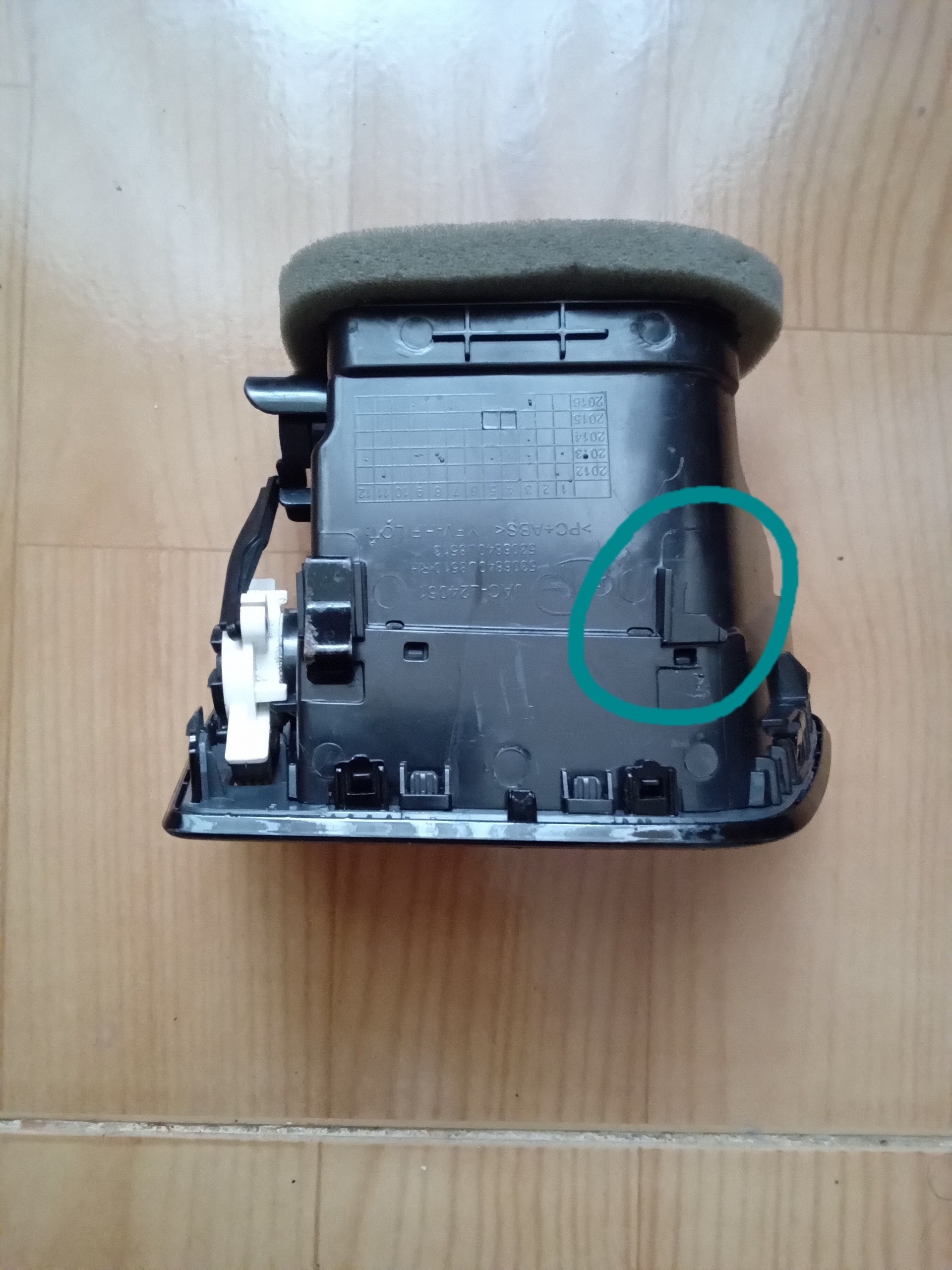 یکی از پایه ها ی خار که در داشبورد قرار میگیره خرابه که در عکس با خط سبز مشخص شده.