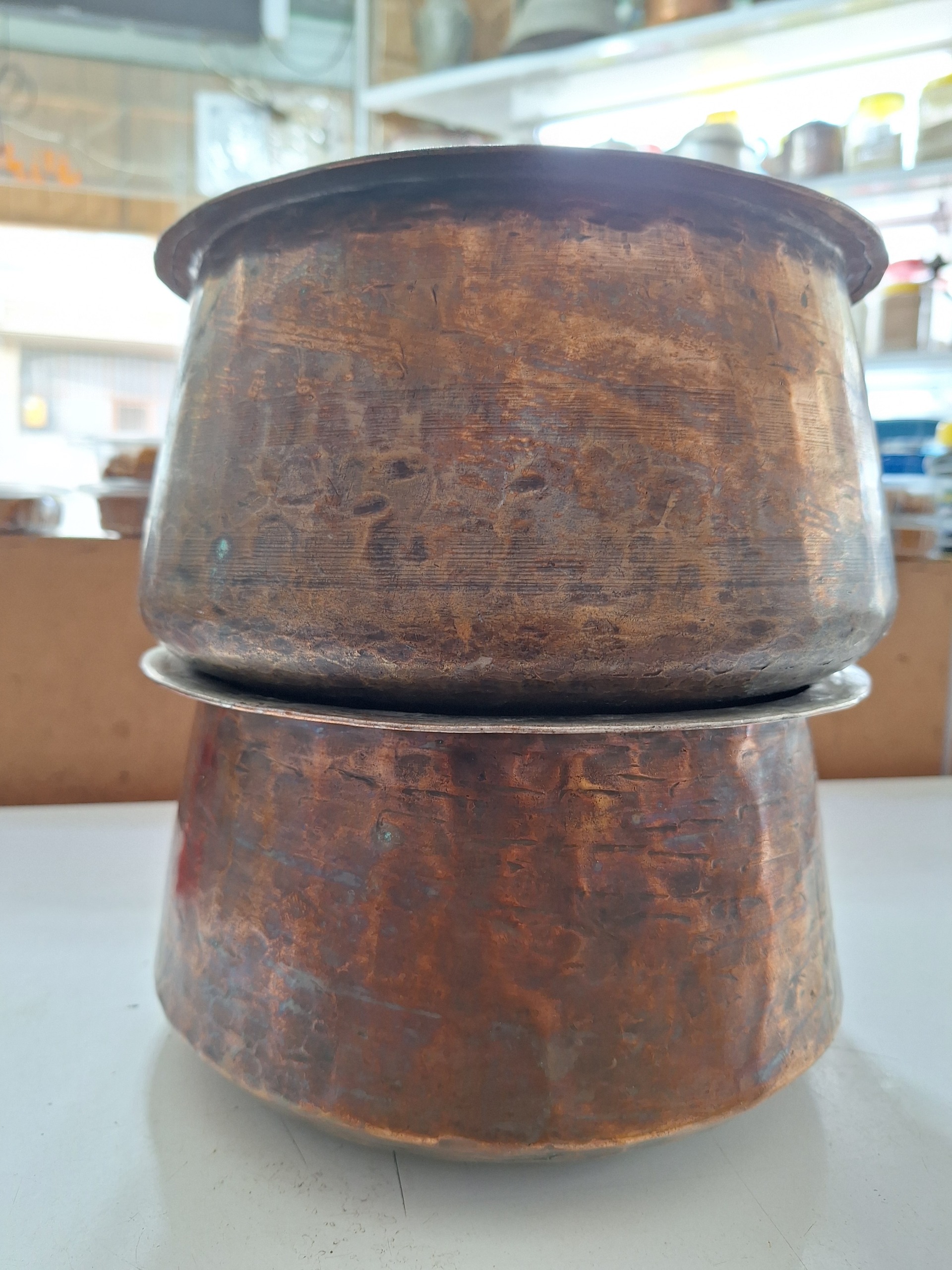 2عدد دیگ مسی قدیمی سفید شده بدون درب
