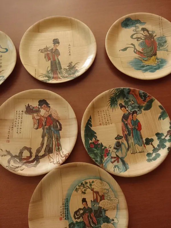 بشقاب پیش دستی بامبو قدیمی آنتیک زن خانم چینی ژاپنی قطر 15ونیم دست 6 تایی
