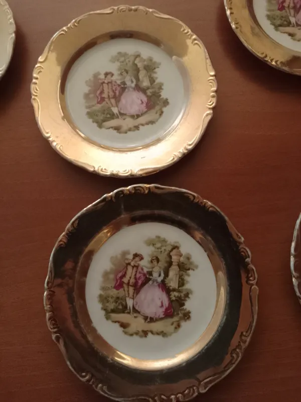 بشقاب پیش دستی دنس دنسی خانم قدیمی آنتیک سفید طلایی دست 6 تایی قطر 15