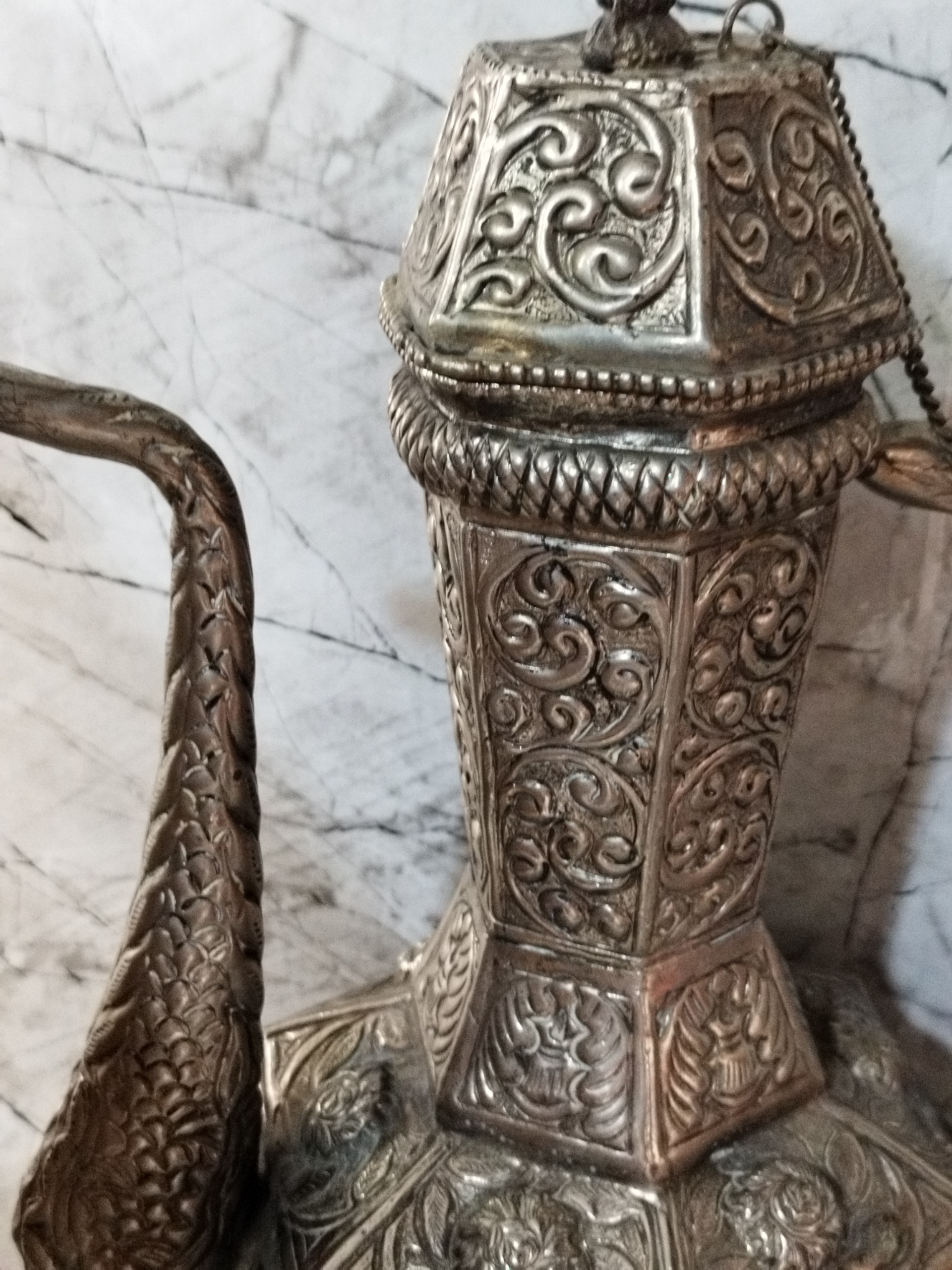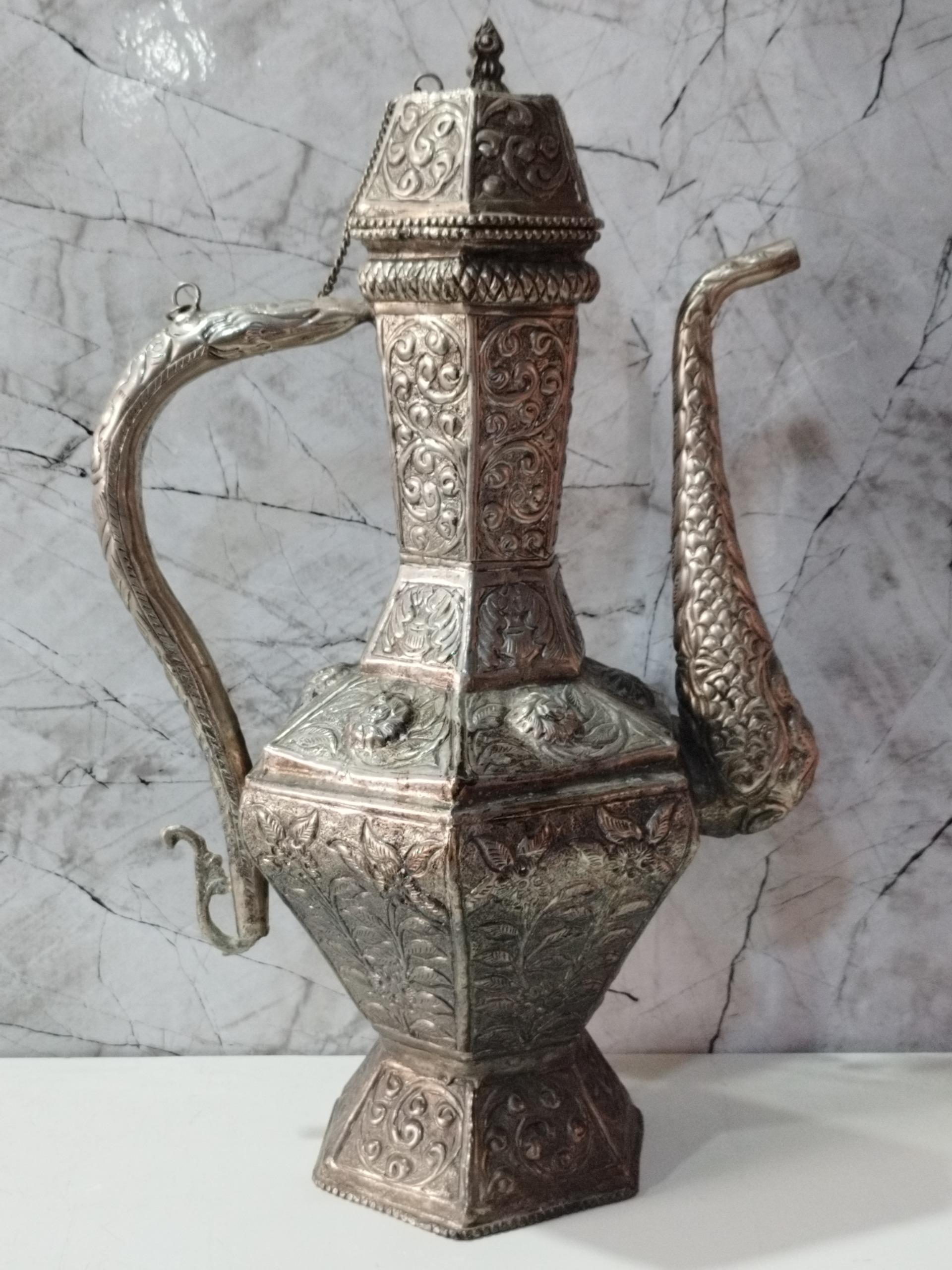 آبریز ،آبریق نوربلین قدیمی تماما دستساز وقلمزنی شده