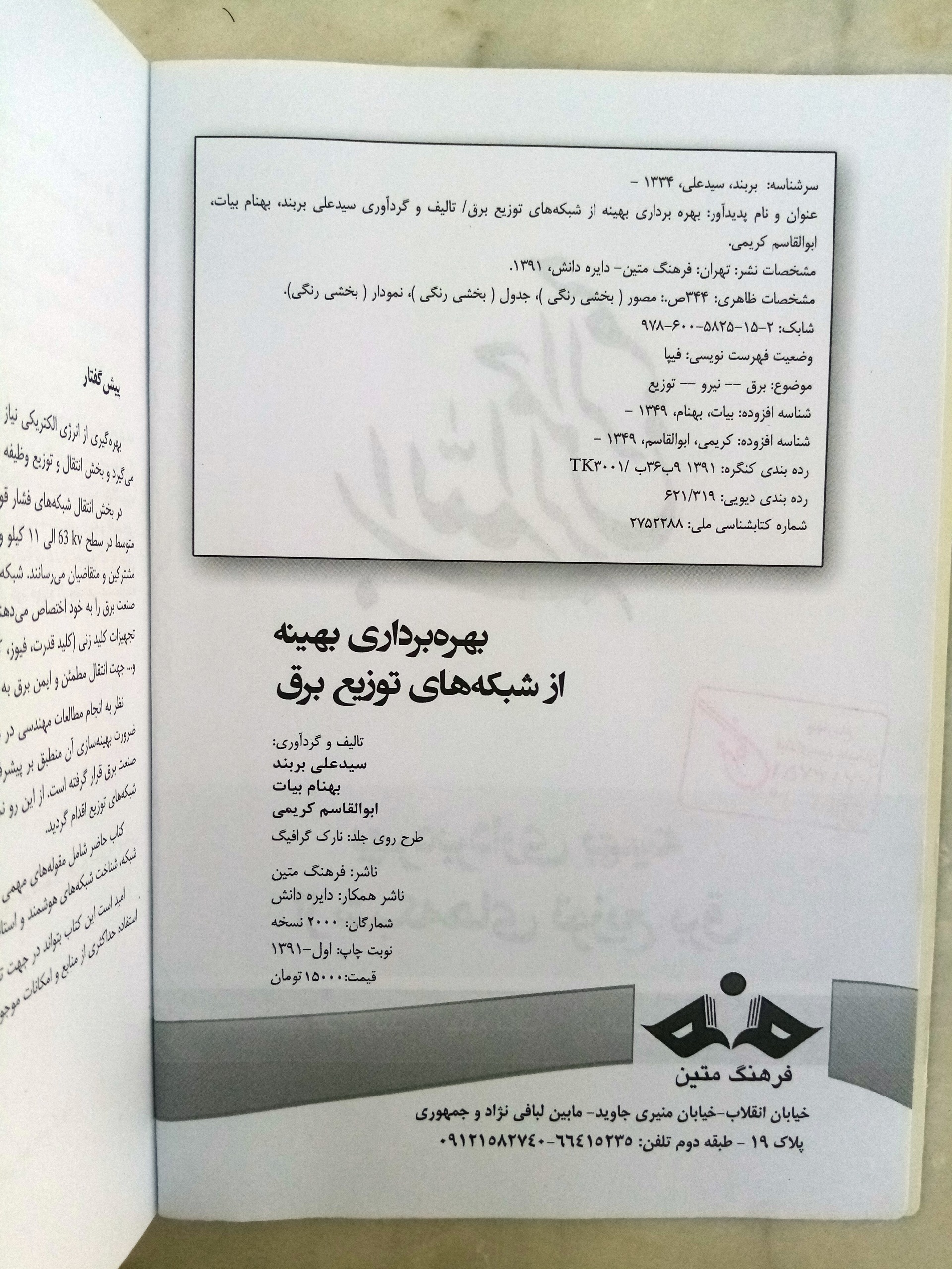 بهره برداری بهینه ازشبکه های برق چاپ 1391