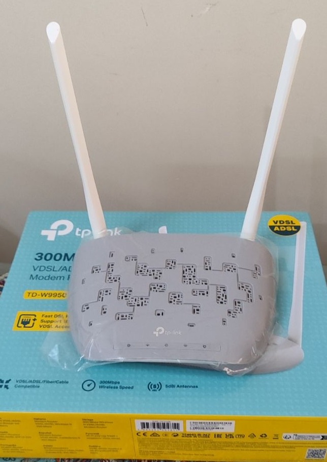 مودم مدل TP-Link TD-W9950 است. ADSL/VDSL پشتیبانی میکند. مودم رو 2 روز پیش خریدم ولی متاسفانه بعد از مراجعهی کارشناس مخابرات و پیگیریهای زیاد مشخص شد که امکان ارائهی سرویس روی خط تلفن منزل من وجود ندارد و این مودم برای منزل من قابل استفاده نیست. مودم کاملا