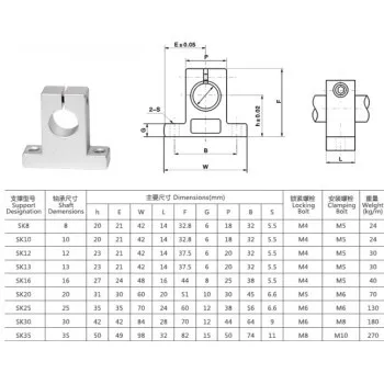 براکت فلزی عمود SK8 آلومینیومی برای نگه داری از شافت خطی یا محور optical پروژه های پرینتر سه بعدی و CNC طراحی شده است. این براکت معروف به بلبرینگ شافت SK در اندازه های مختلف مانند SK8 ، SK10 ، SK12 ، SK13 ، SK16 ، SK20 ، SK25 ، SK30 ، SK40 ، SK50 ، SK60 و غیره ارائه می شود. براکت SK از جنس آلومینیوم است که در برابر خوردگی ، زنگ زدگی ، اسید و غیره از مقاومت بالایی برخوردار است و دارای شکافی درقسمت نگه داری شافت است که برای بستن شافت کشویی با چفت بسیار مناسب است. سطح براکت سندبلاست و اکسیده شده است که نصب و مونتاژی محکم، ارزان و آسان را فراهم می آورد. کاربرد براکت فلزی SK8 : پرینتر سه بعدی ماشین CNC ماشین های صنعتی  مشخصات براکت نگهدارنده SK8 : مدل: SK8 شناسه شفت: 8 میلی متر اندازه: 42x20x21mm جنس: آلومینیوم