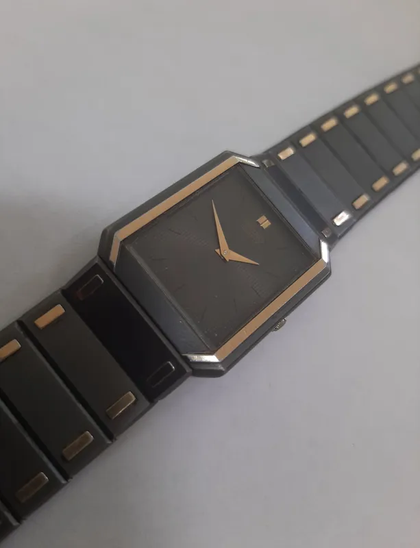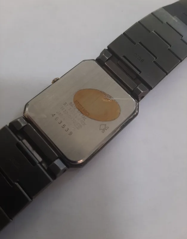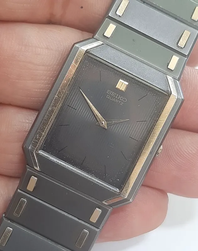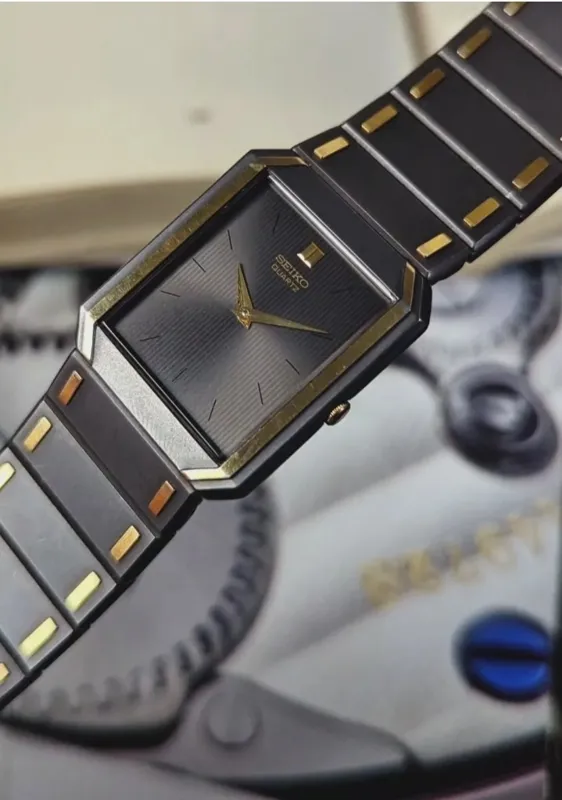 سیکو کوارتز 7430-5479 گواهی بر تعهد این برند به ظرافت و سادگی است. این ساعت که در اوایل دهه 1980 عرضه شد، دارای قابی مستطیلی و براق است که از فلز پایه با یک لایه تیتانیوم بادوام و پشت استیل ضد زنگ ساخته شده و راحتی سبک را با مقاومت پایدار ترکیب میکند. صفحه ساعت، به رنگ شامپاینی ملایم، با شاخصهای ساده و عقربههای باریک تکمیل میشود و خوانایی را بدون تزئینات غیرضروری تضمین میکند.