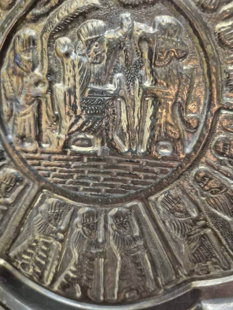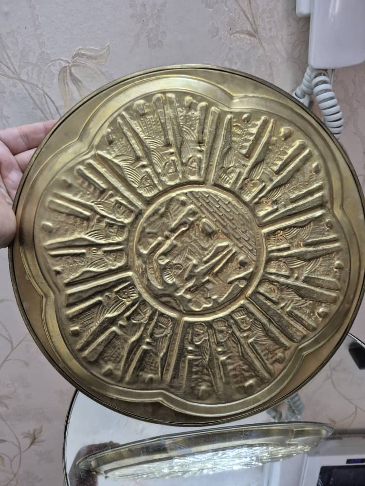 سینی شش قل برنجی تمام قلم دست قدیمی و کمیاب
