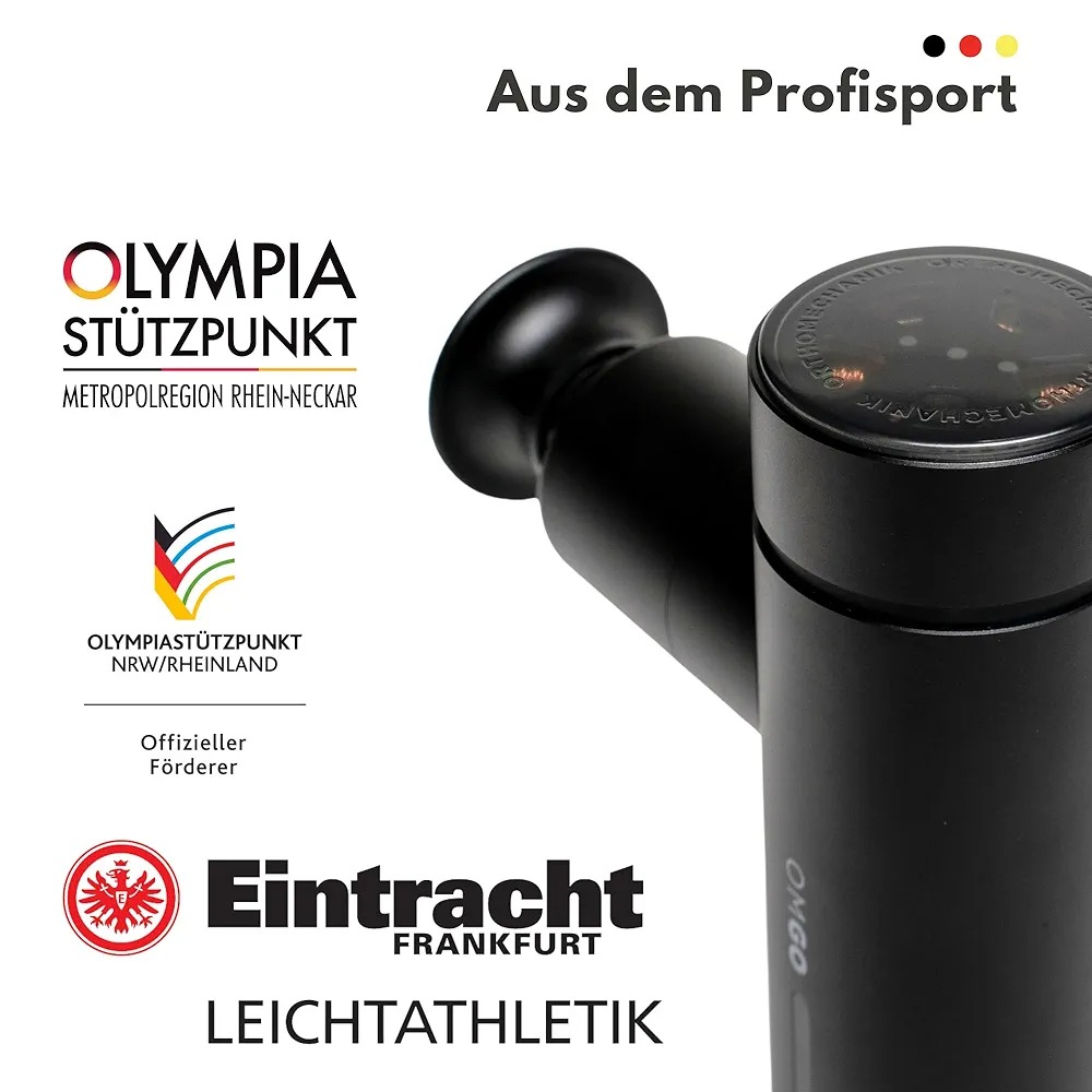 تفنگ ماساژ ورزشکار حرفهای: تفنگ ماساژ OM Go / OrthoGo به طور موثری تنش عضلانی را تسکین میدهد - چه در حین تمرین، چه در خانه و چه در حال حرکت.