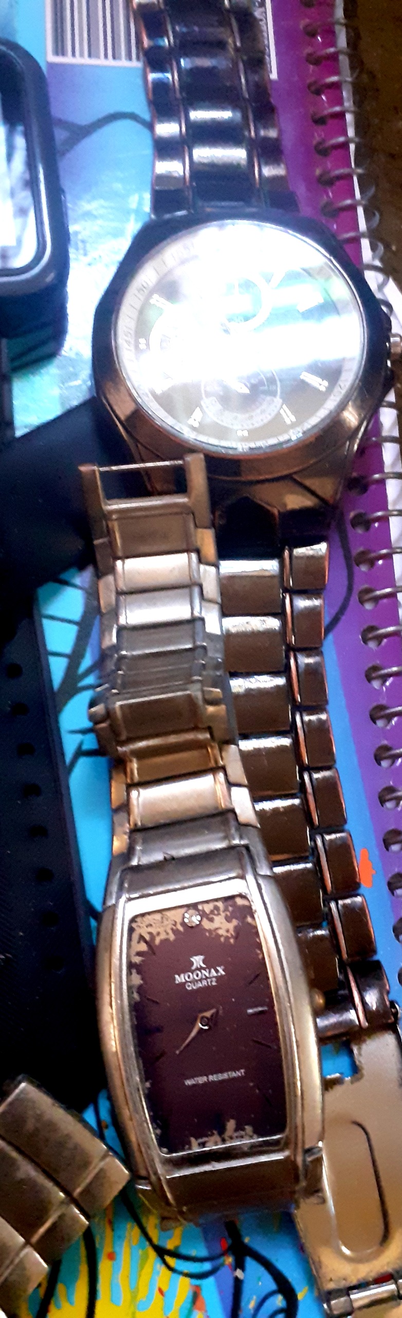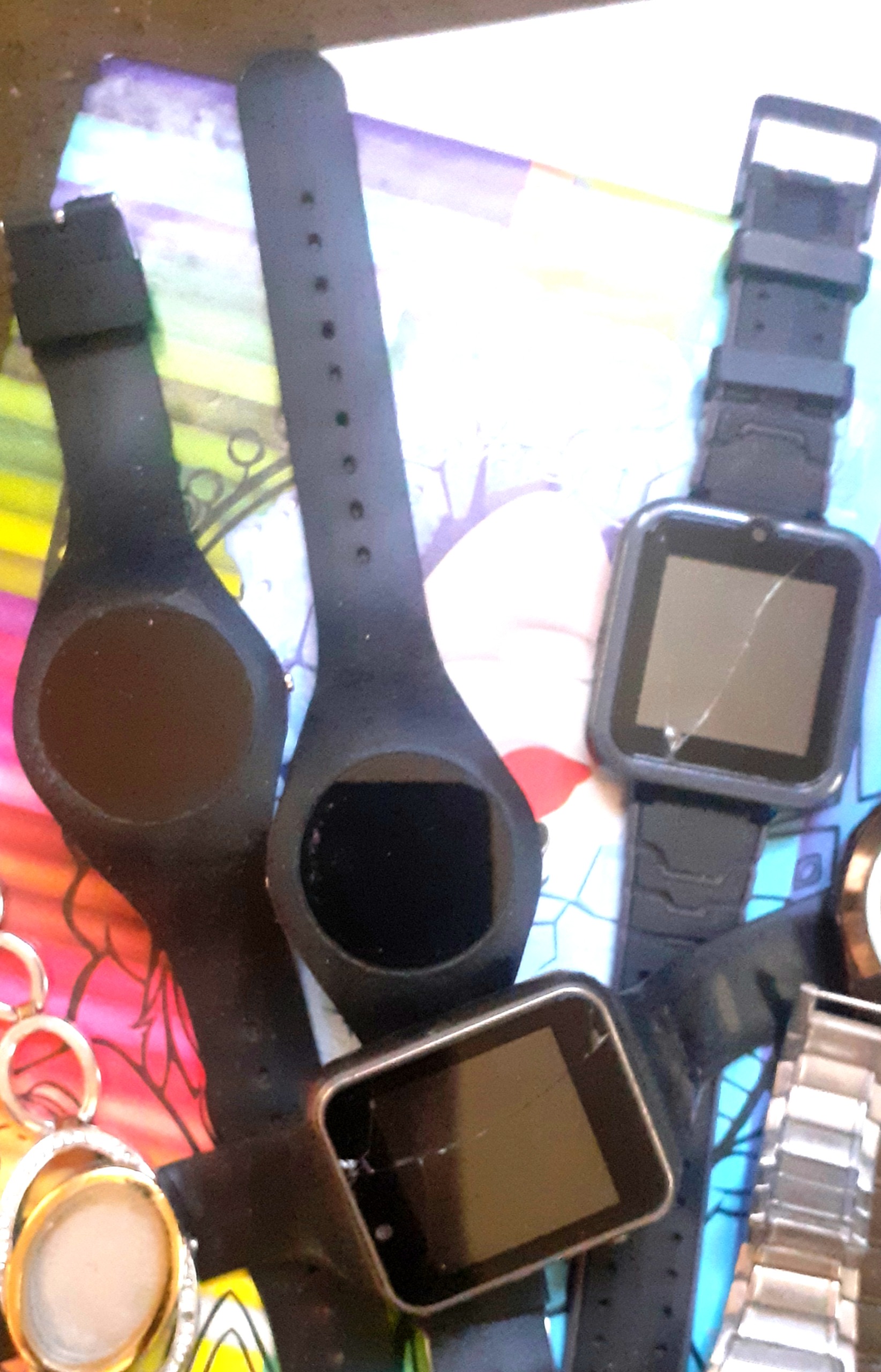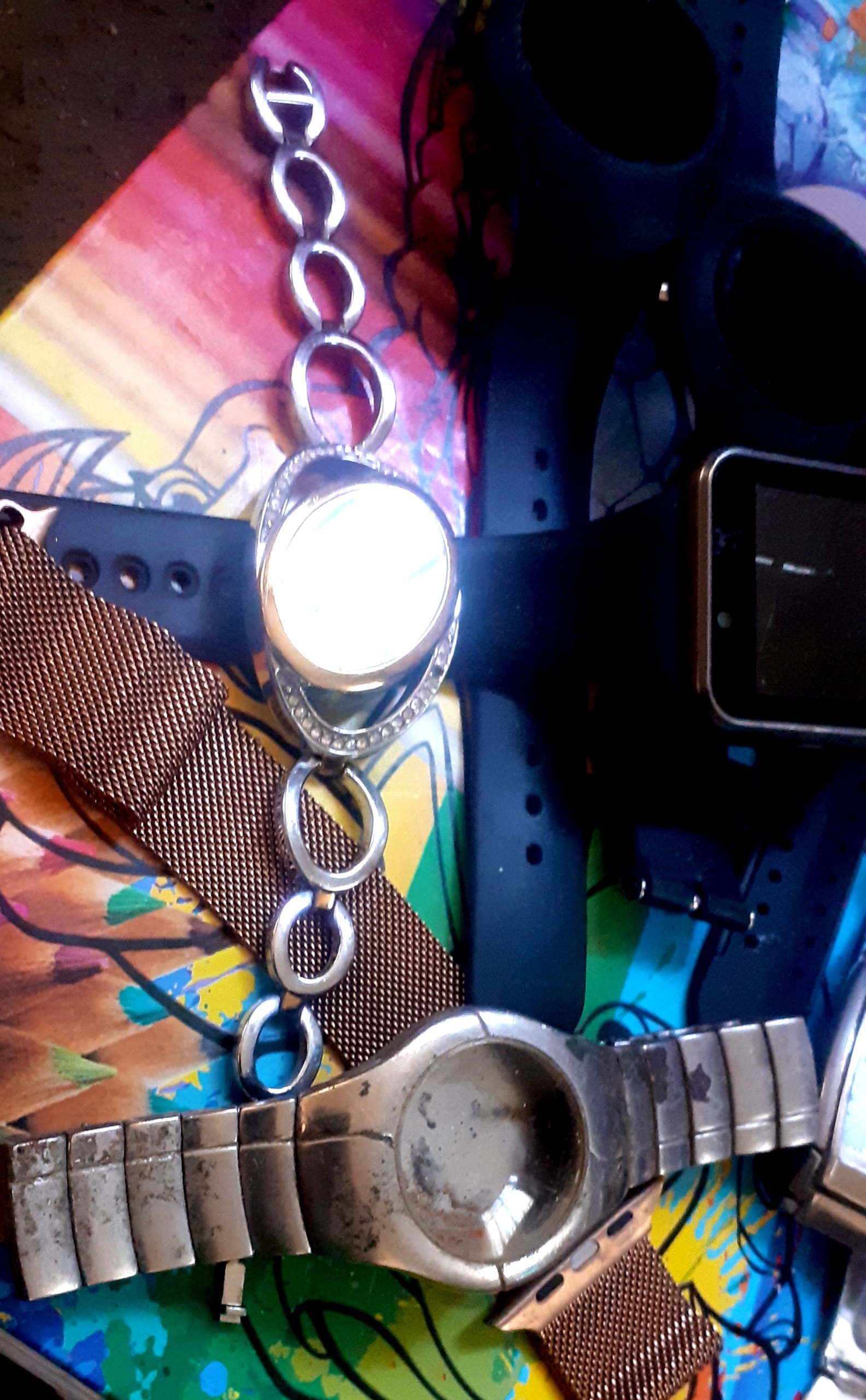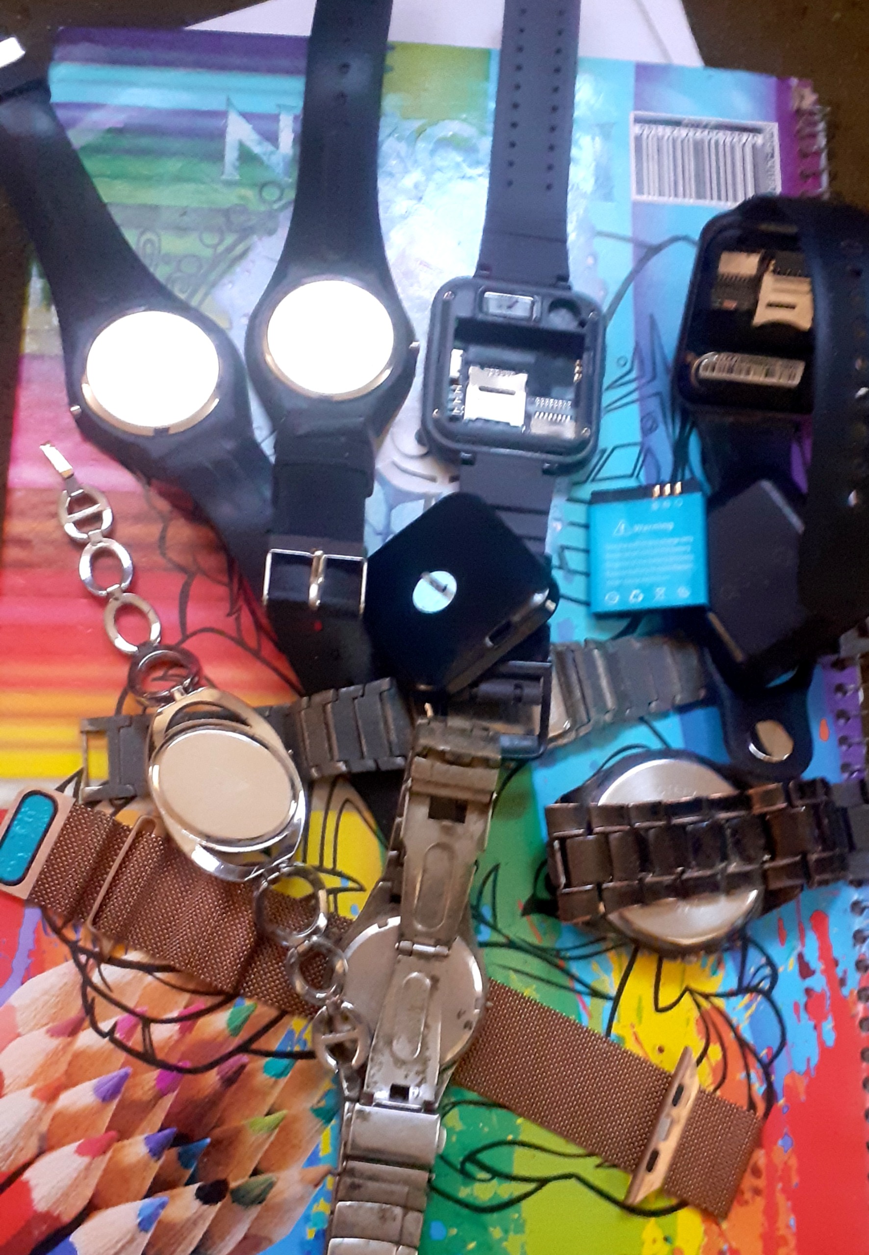 8عدد ساعت شامله، 2عدد سیمکارتخور ، 2عدد کامپیوتری طرح هوشمند ، 2عدد عقربه ای ، 2عدد قاب و بند و یک عدد بند حصیری آهنربایی همه بعنوانه معیوب فروخته میشود