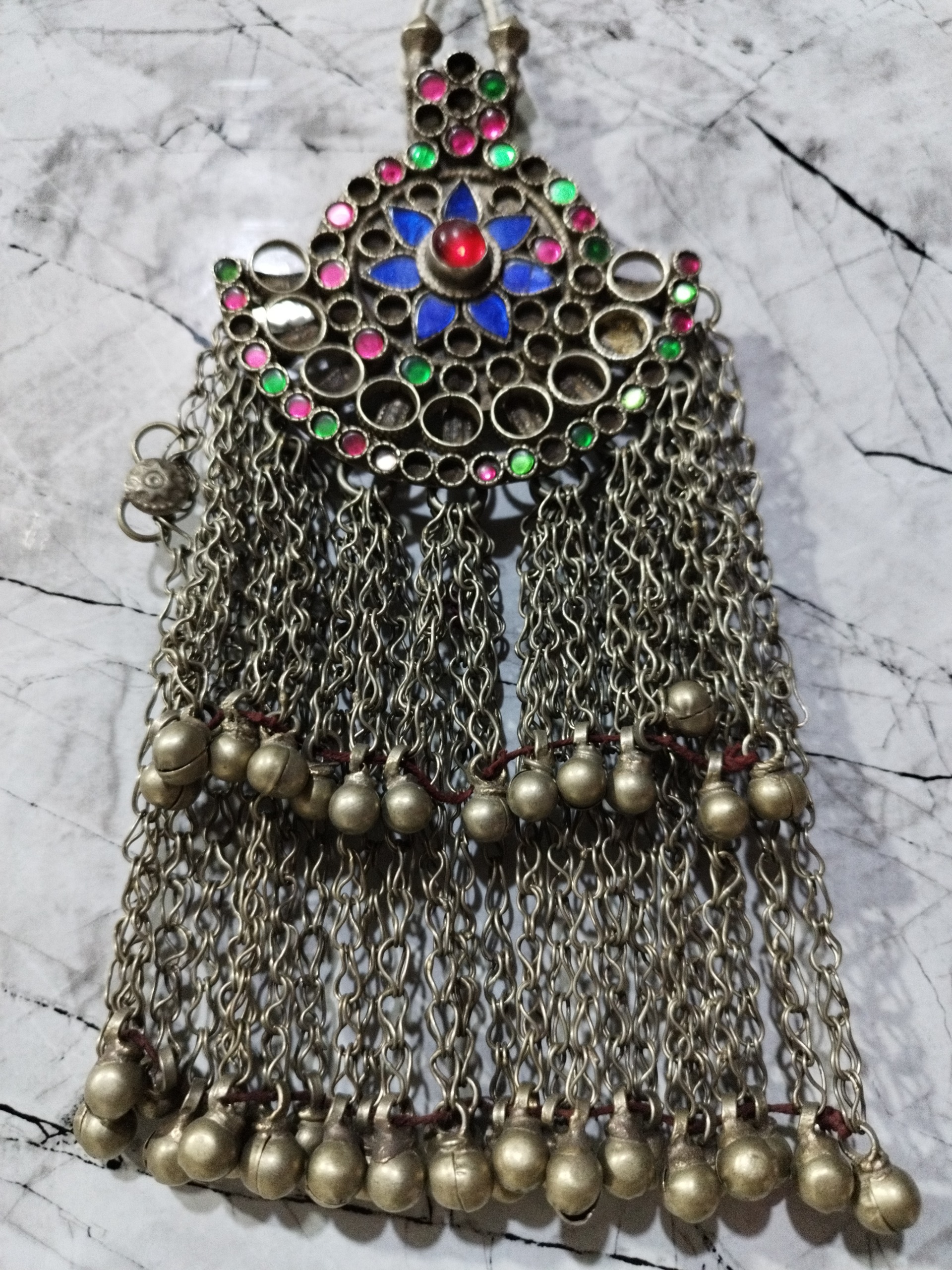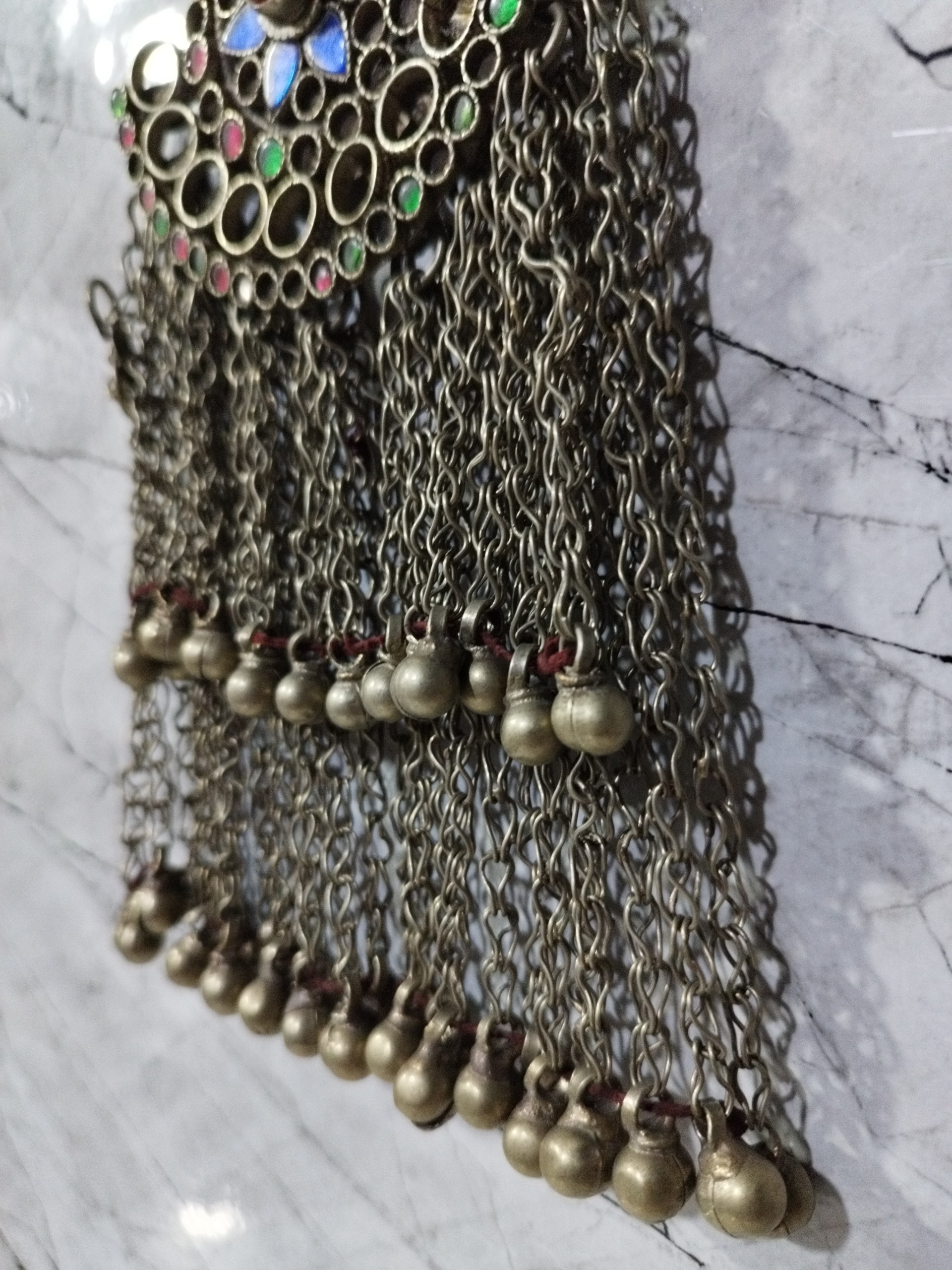 تماما نگین کاری شده،، زنجیر دستباف با زنگهای دستساز