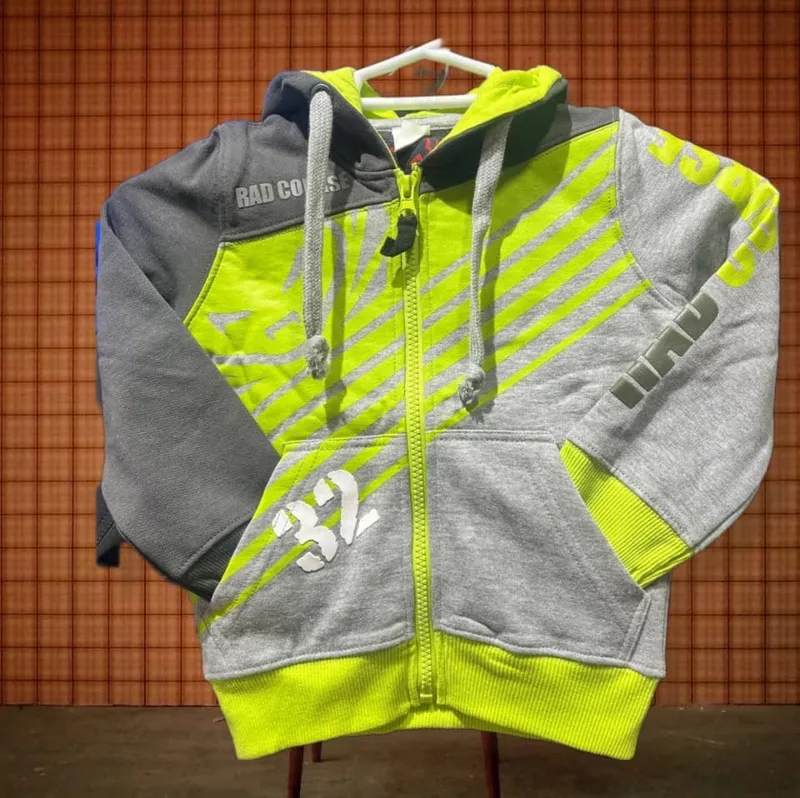 سویشرت اسپورت بچه گانه بین 3 تا 4 سال تولید کشور بنگلادش بدون هیچ گونه پلی استر و تمام نخ پنبه که بچه حساسیت پوستی پیدا نمیکند