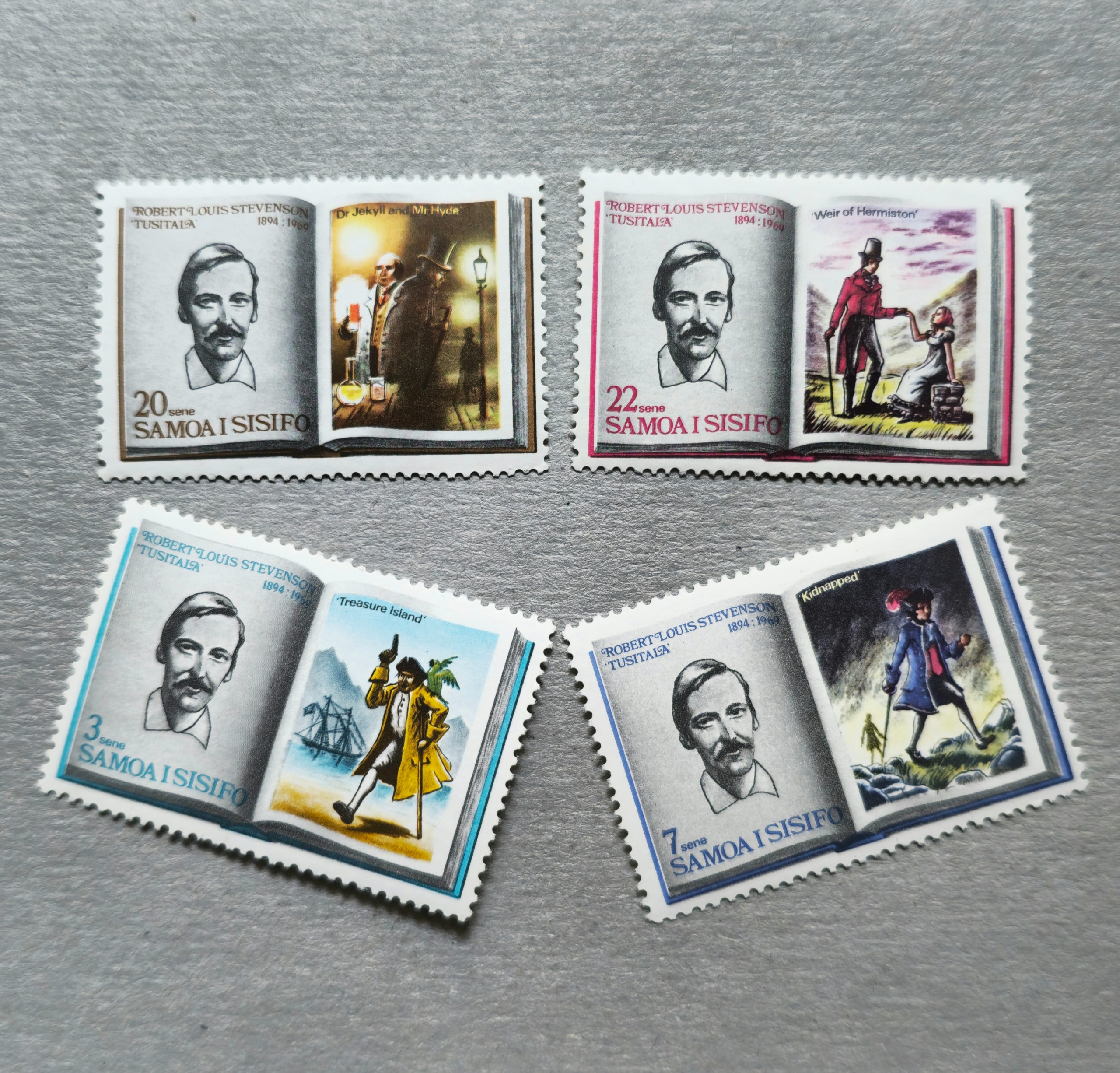 این مجموعه، روایتی تصویری از پیوند ادبیات اسکاتلند با فرهنگ ساموآ است. از «جزیره گنج» پرماجرا تا «ویر هرمیستون» ناتمام، هر تمبر تکه ای از میراث استیونسن را زنده می کند.