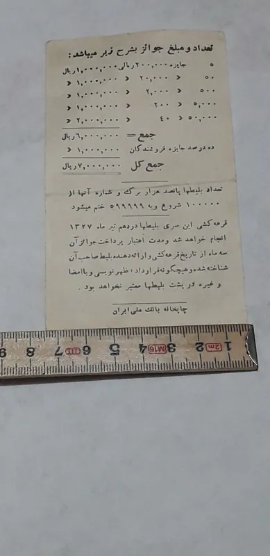 بلیط بخت ازمایی 20 ریال 1327خرداد کلکسبونی