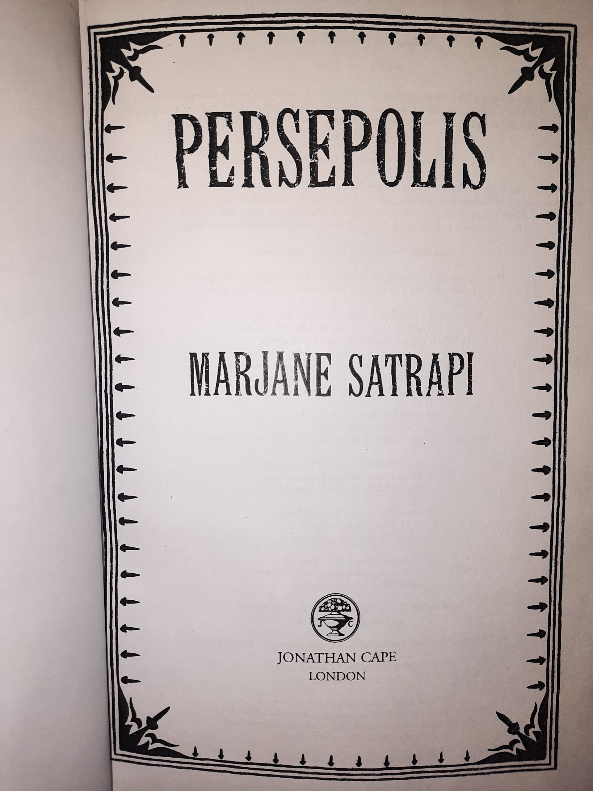 Persepolis | Marjane Satrapi | 346 Pages | Jonathan Cape, 2006.