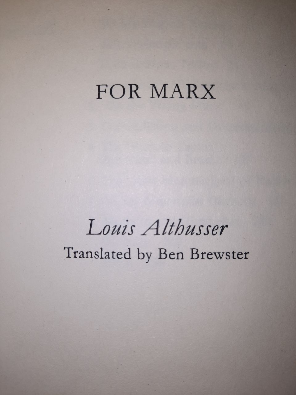 For Marx | Louis Althusser | Translated by Ben Brewster | 272 Pages | Verso, 1979.