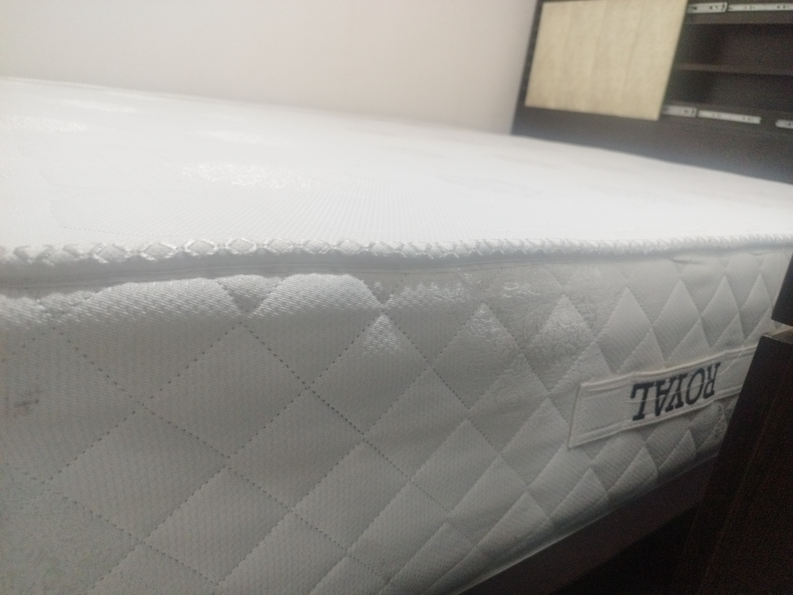 تخت خواب دو نفره دارای کشوی ریلی و چراغ خواب با خوشخواب مارک رویال بسیار نو و تمیز در حد آکبند به همراه یک عدد پاتختی دو کشو