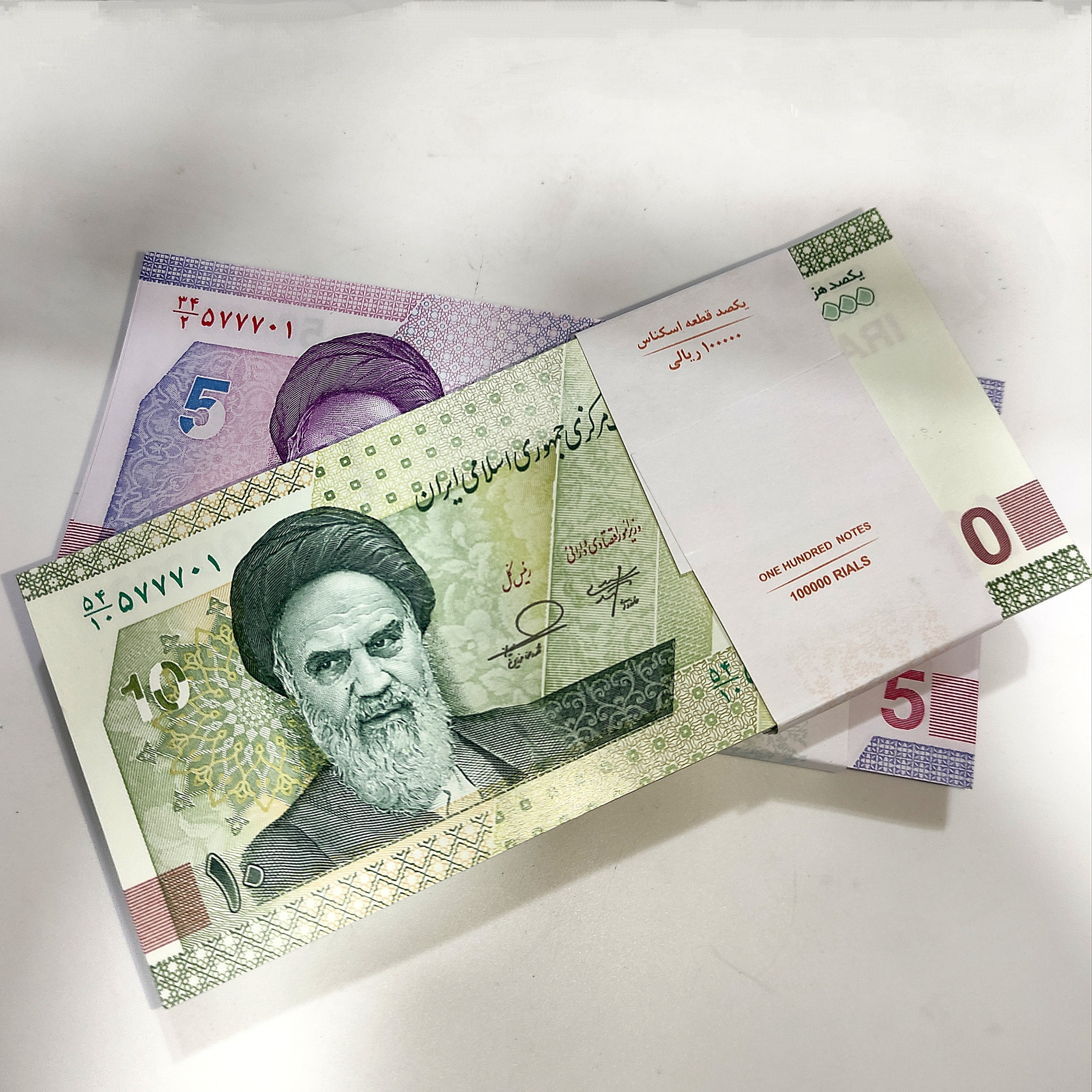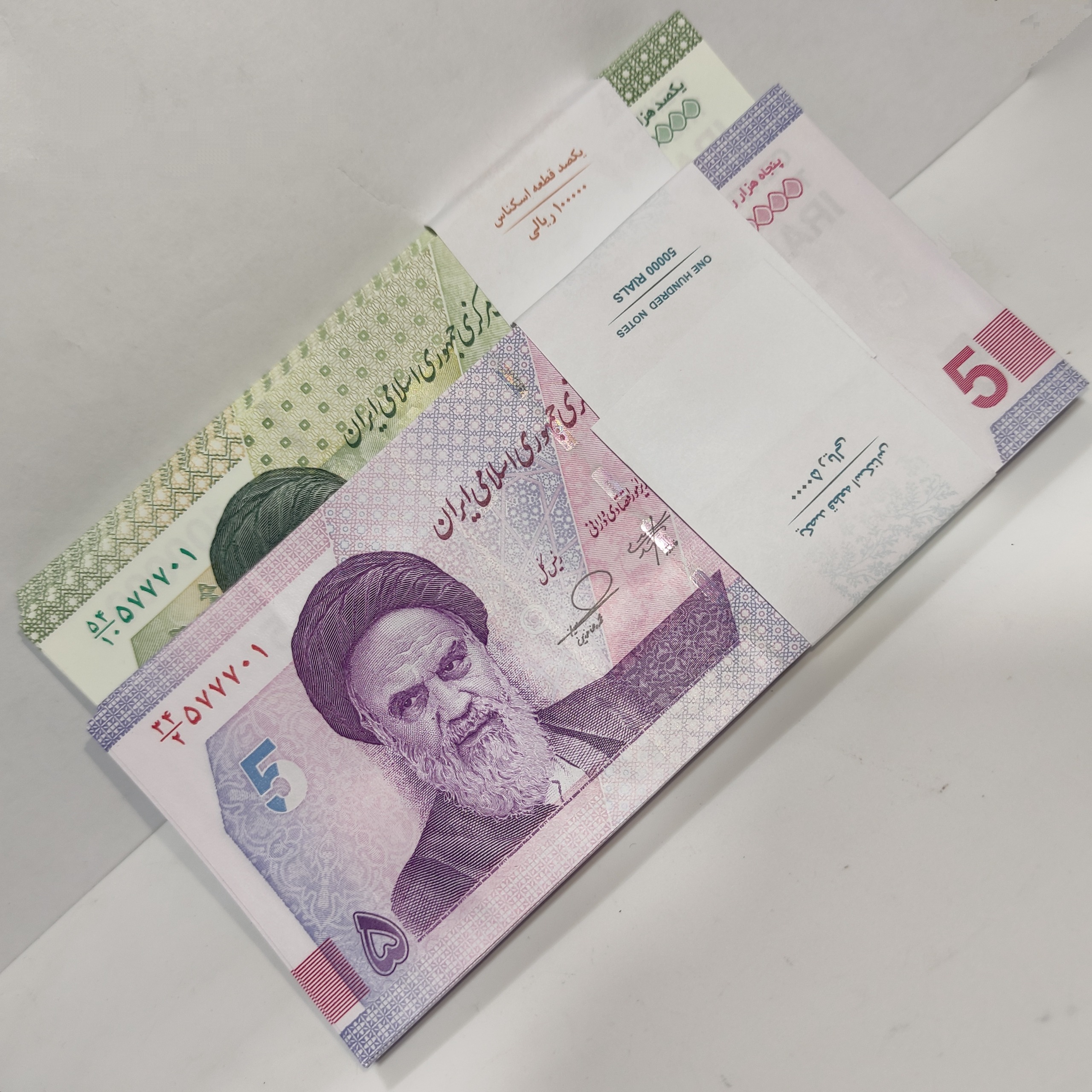 دو بسته اسکناس همسان نیمه رند و قرینه