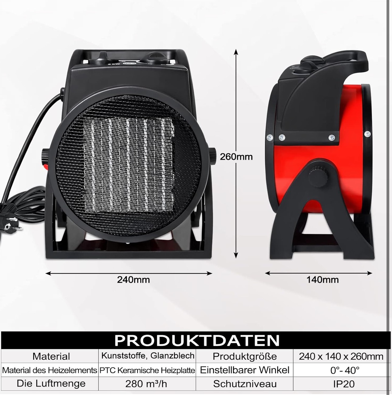 بخاری برقی فن دار LZQ، بخاری سرامیکی، صرفه جویی در مصرف انرژی با محافظت در برابر گرمای بیش از حد و گرمایش سریع برای کارگاه ساختمانی، گاراژ، خانه آپارتمانی 3000 وات