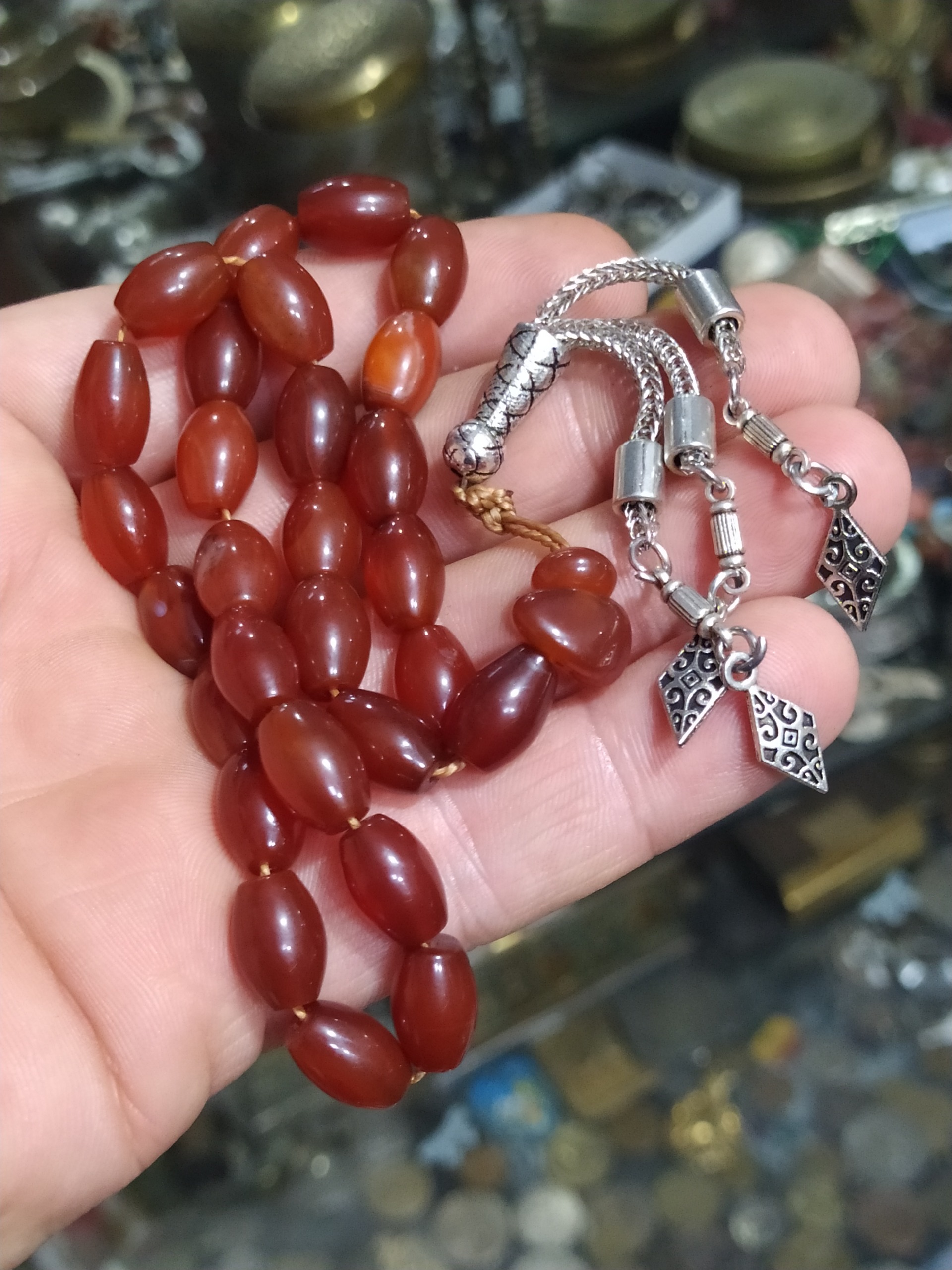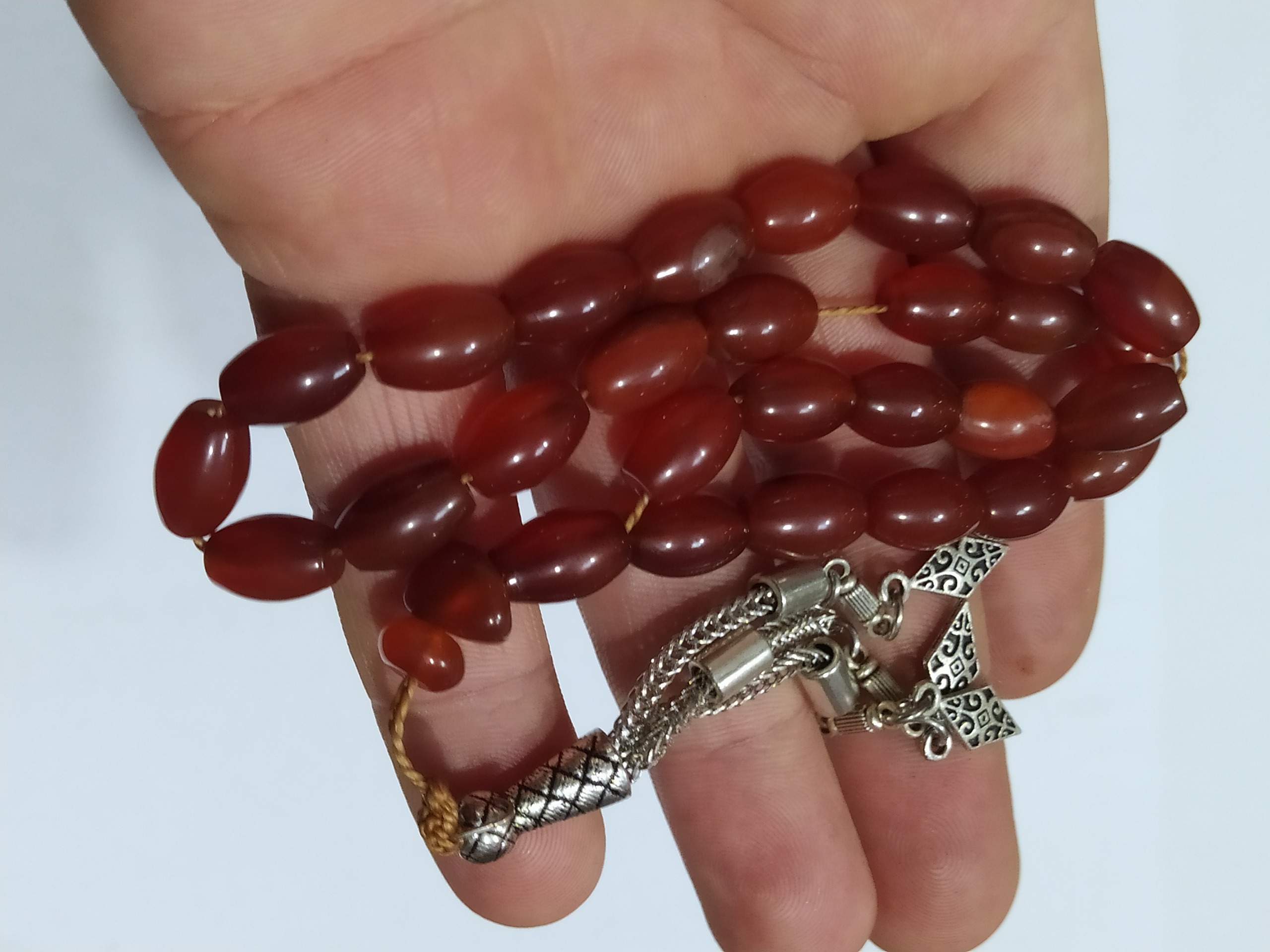 تسبیح عقیق اصل تاجری با سرتسبیح زیبا خوشدست