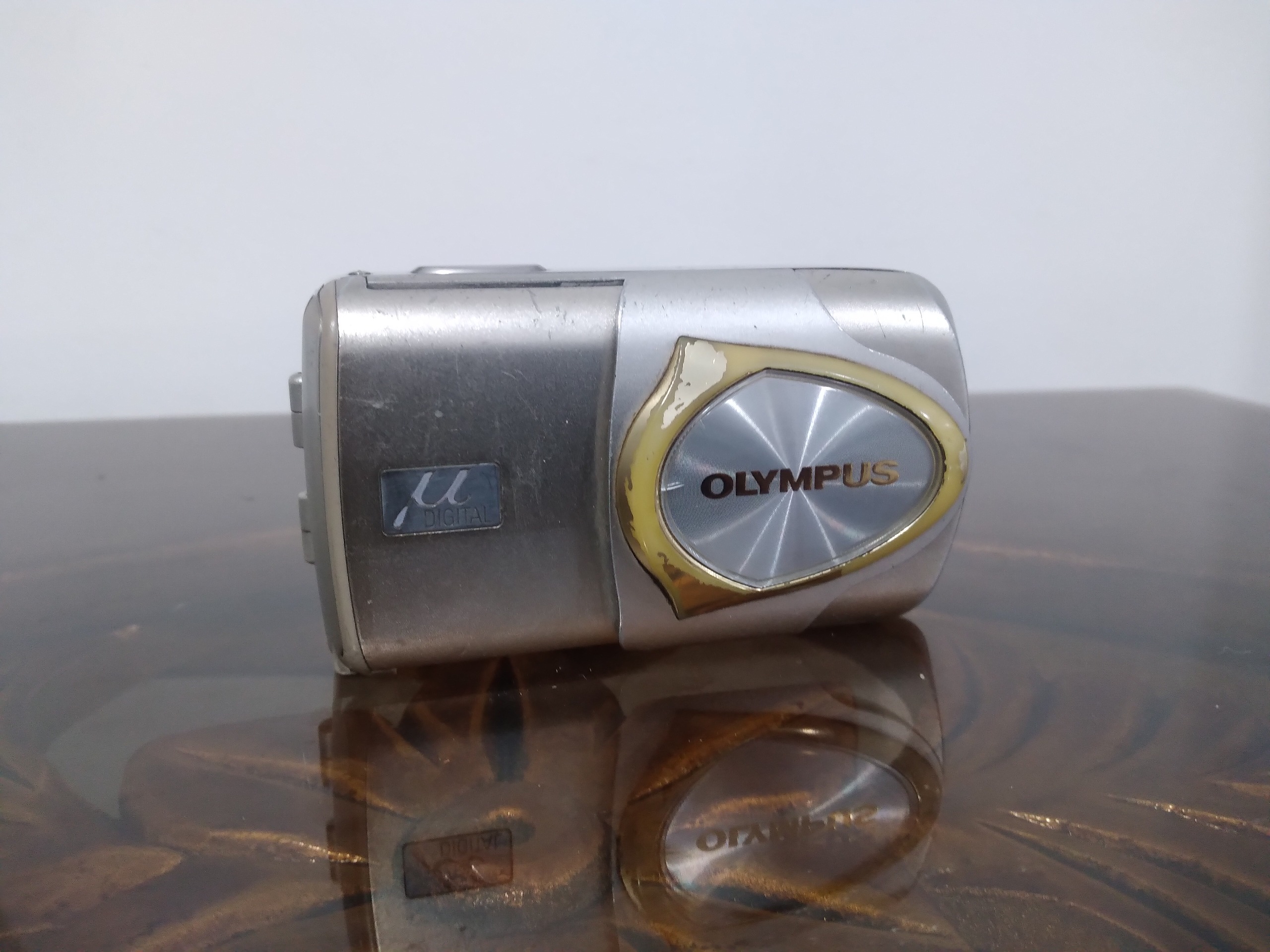 دوربین دیجیتال المپیوس mjuمعروف .دوربین دارای خط وخش .روشن میشه ولی ایرادفنی داره .صفحه نمایش میاد لنز بازمیشه ولی باید با دست بسته بشه .کمی باتری باد کرده .مخصوص کلکسیونر.جز اولین سری دوربینهای دیجیتال المپیوس است